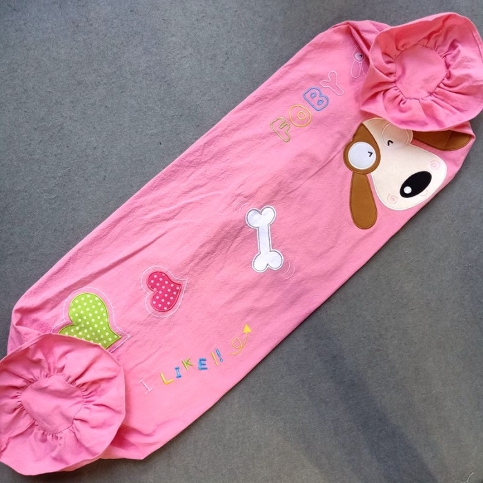 棉布荷葉邊拼布縫製萌狗、貓卡通大童、成人單人、雙人枕套