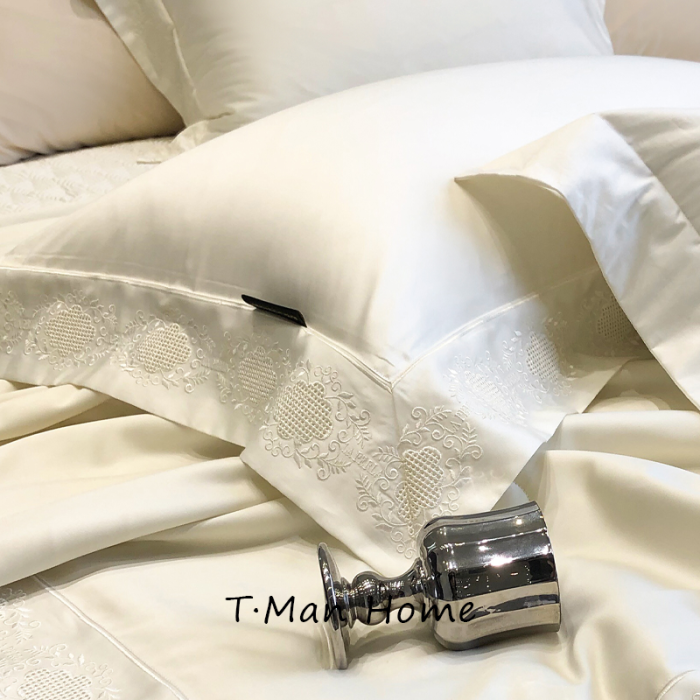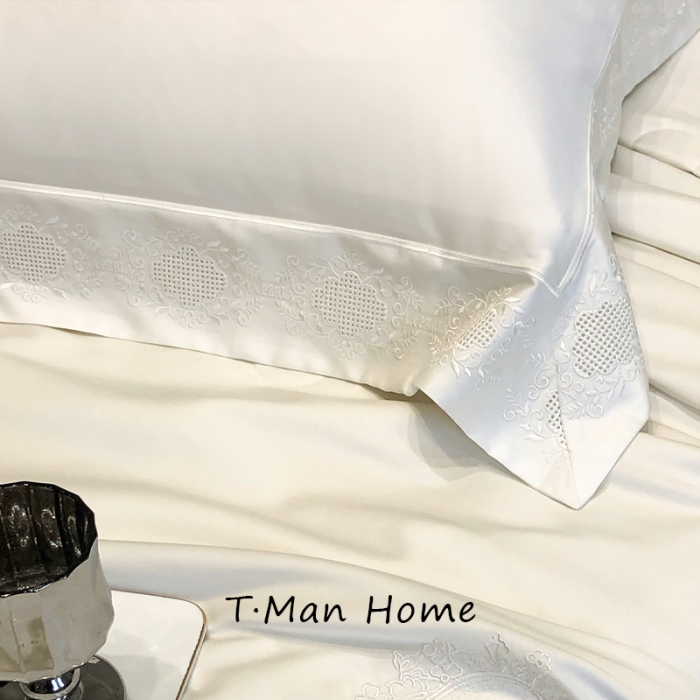 歐式100支天絲棉枕套一對鏤空奶白色夏季枕頭套子涼感萊賽爾單人