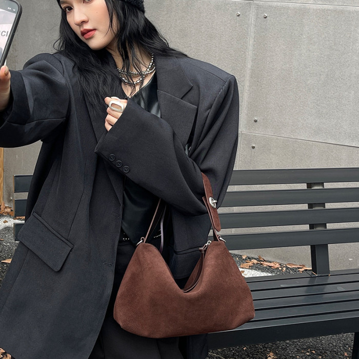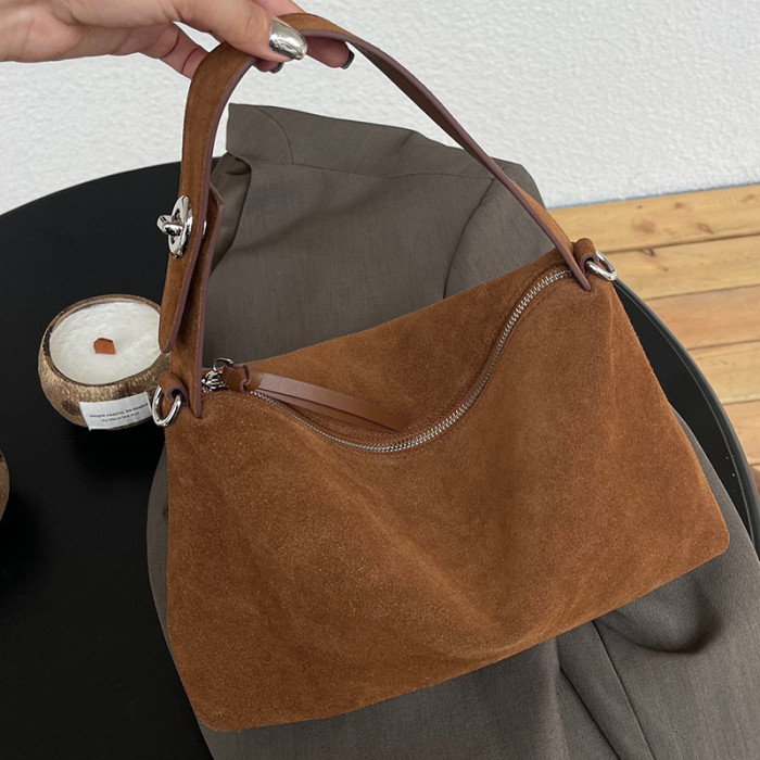 包包女新款小衆麂皮腋下法棍包復古磨砂頭層牛皮單肩包手提包潮包