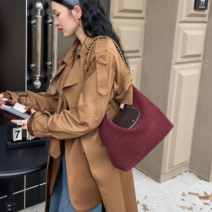款式1 包包女士2024新款磨砂牛皮女包托特包斜挎包真皮大容量單肩鏈條包