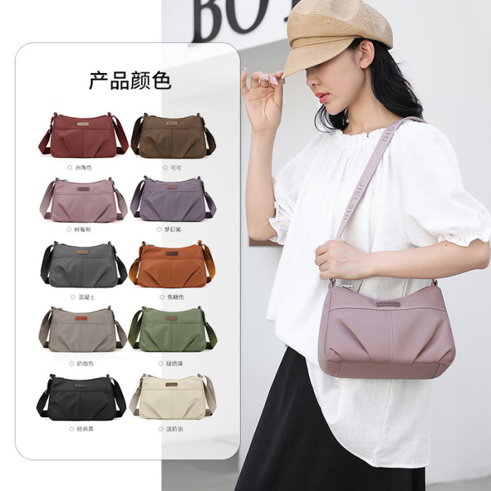 新款時尚百搭斜後背包女都市簡約休閒布藝小方包輕便質感單肩女包