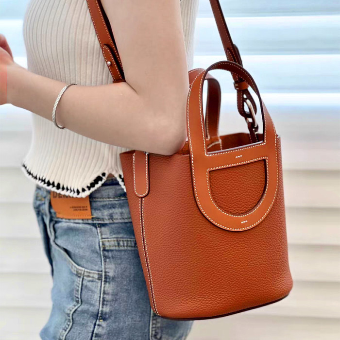 款式1 | 頭層牛皮豬鼻子菜籃子水桶包女2024新款真皮女包手提包單肩loop包 |