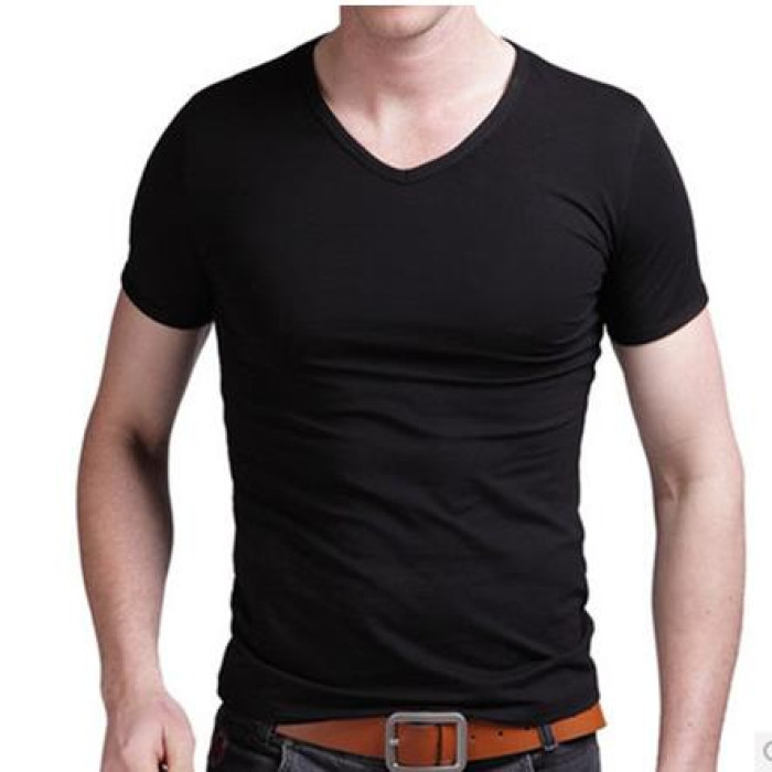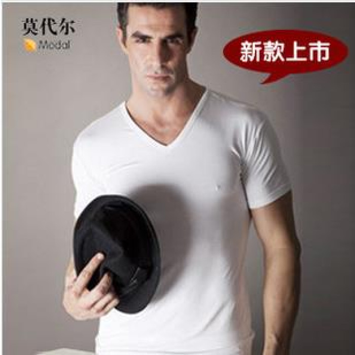 男士短袖T恤男T恤男裝純色莫代爾加大超肥V領短袖t恤 男士