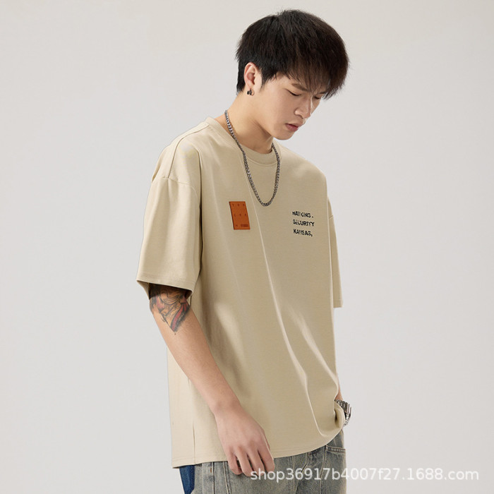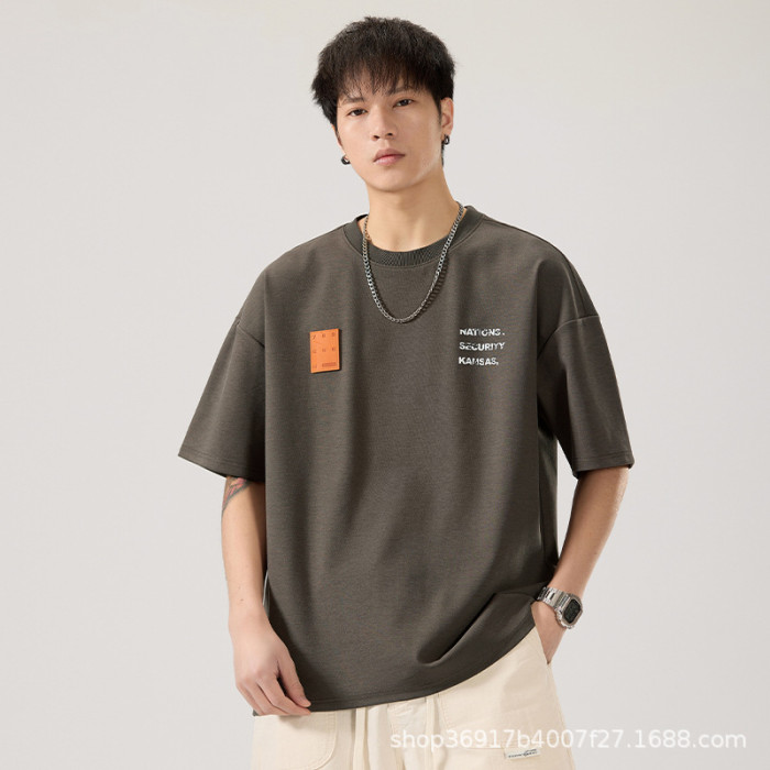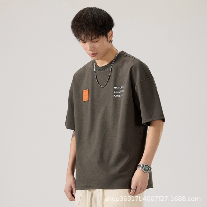 夏季新款天絲涼感男士短袖百搭潮流寬松美式印花上衣男t恤T恤薄棉