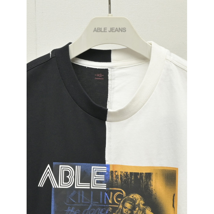 其實很好看男T恤ABLE JEANS男純棉印花圓領體恤衫短袖夏季休閒裝