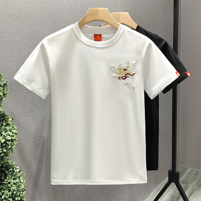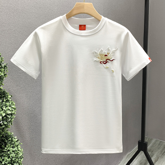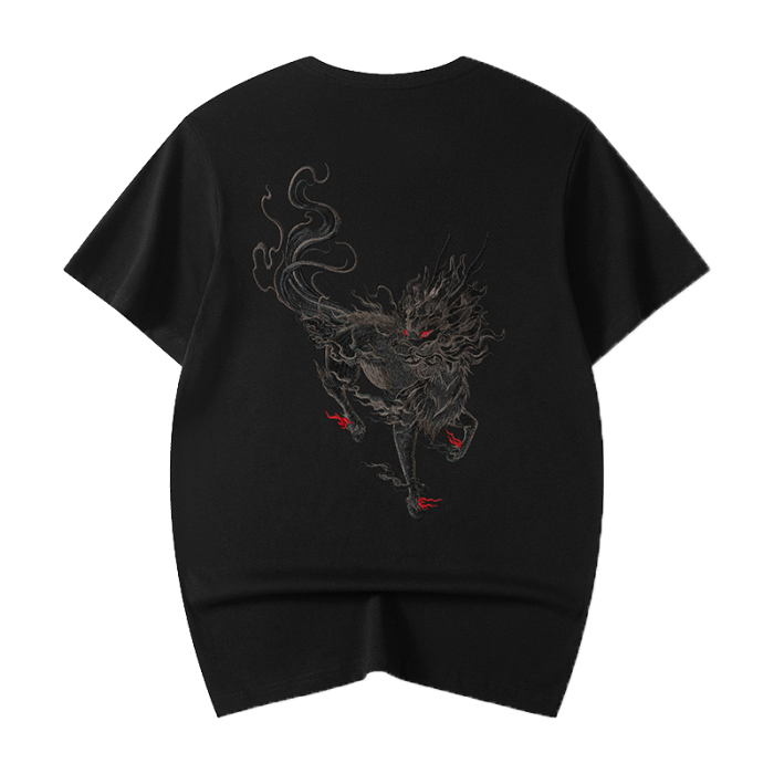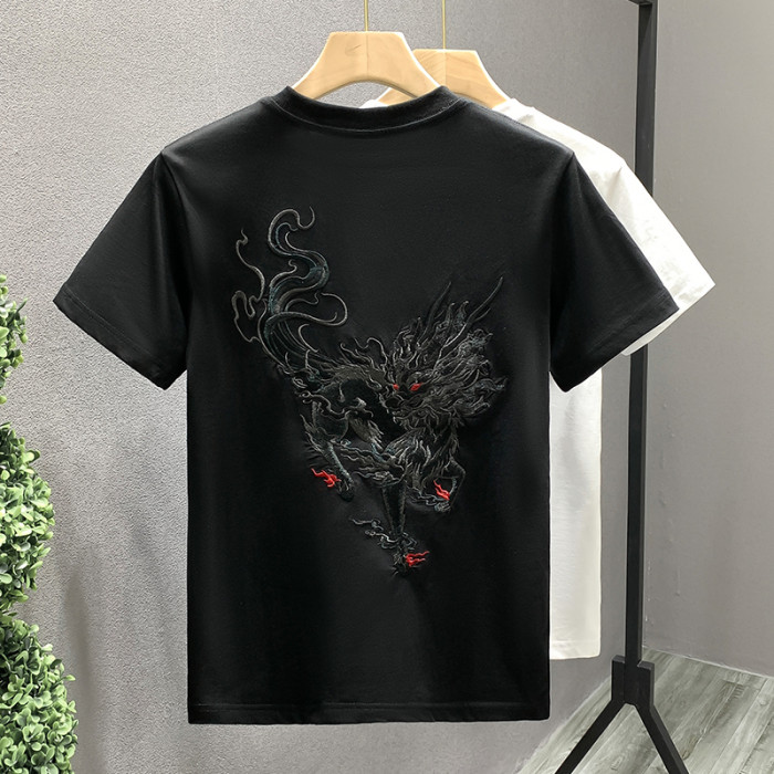 歐貨潮牌國潮重工麒麟刺綉高級感輕奢男T恤短袖網紅爆款半袖體恤
