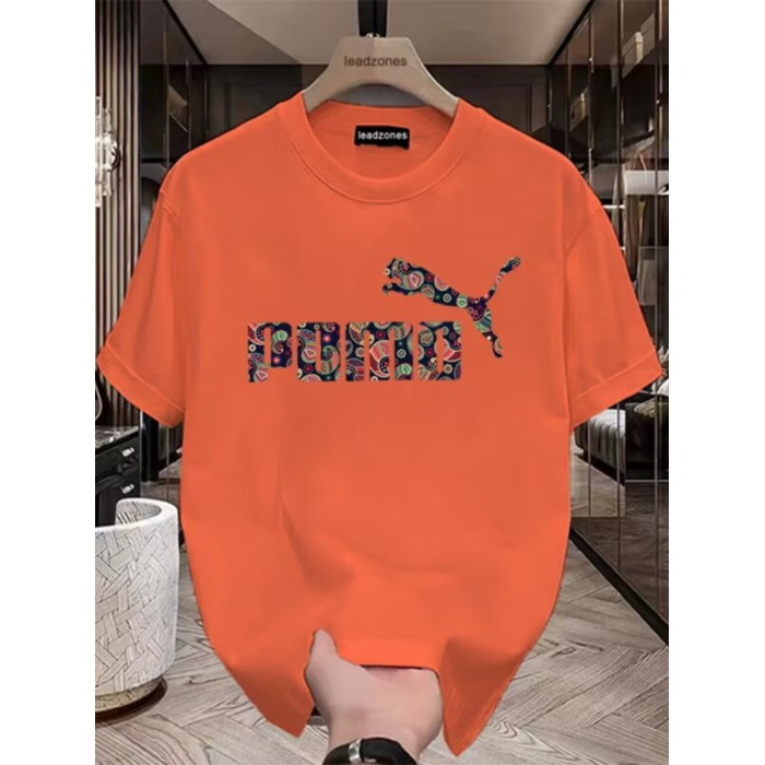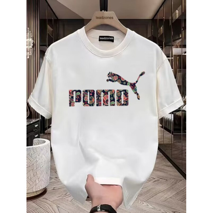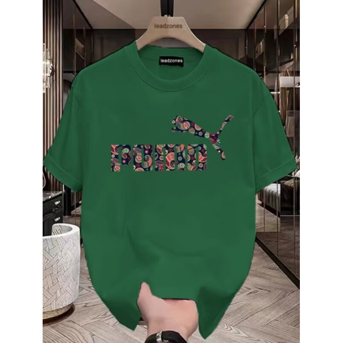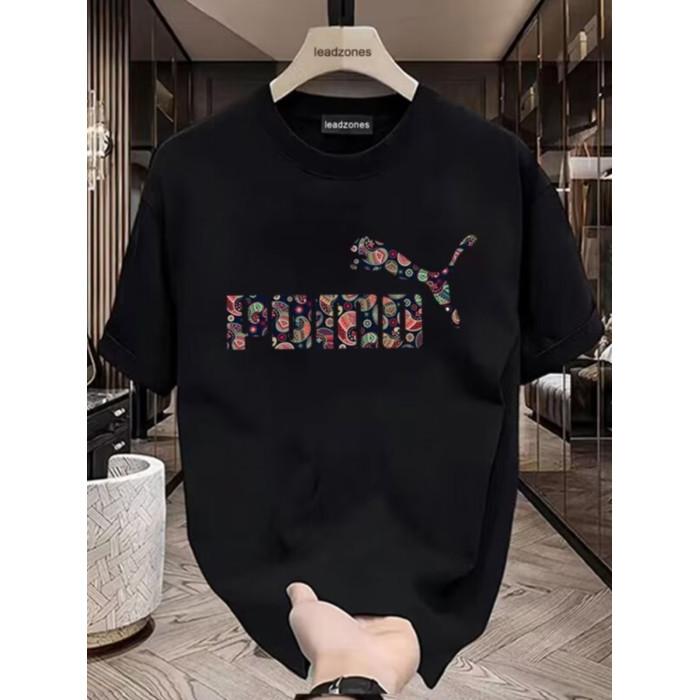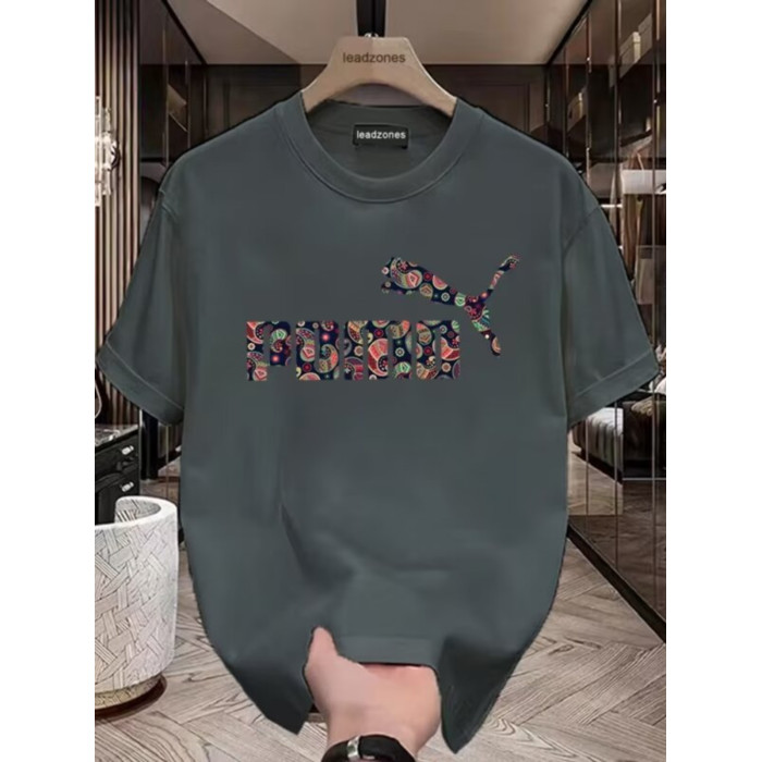 歐洲站潮流豹子印花上衣高品質冰絲光棉短袖男T恤修身透氣半袖衫