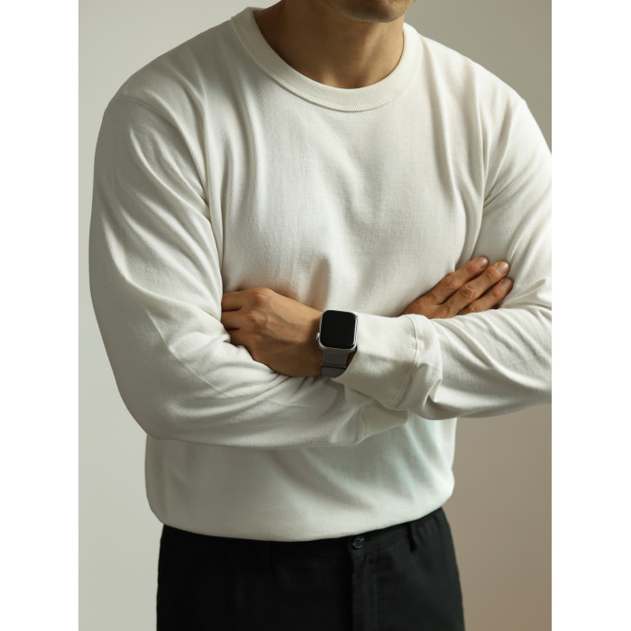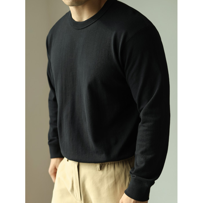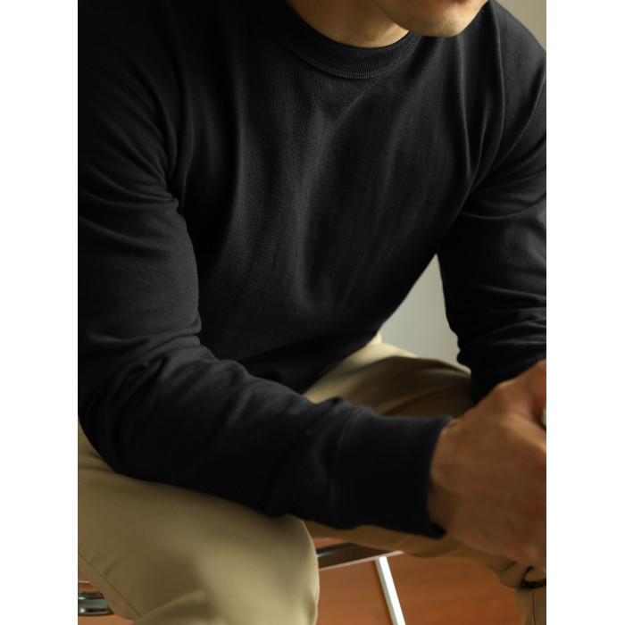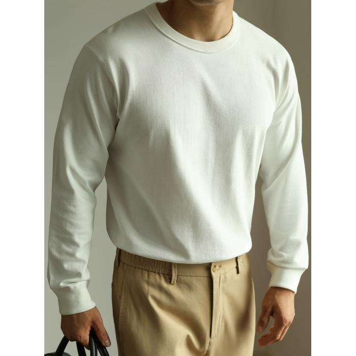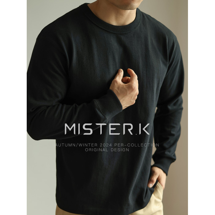 K先生 美式復古無縫桶織長袖體恤純色圓領寬松上衣男t恤秋衣純棉