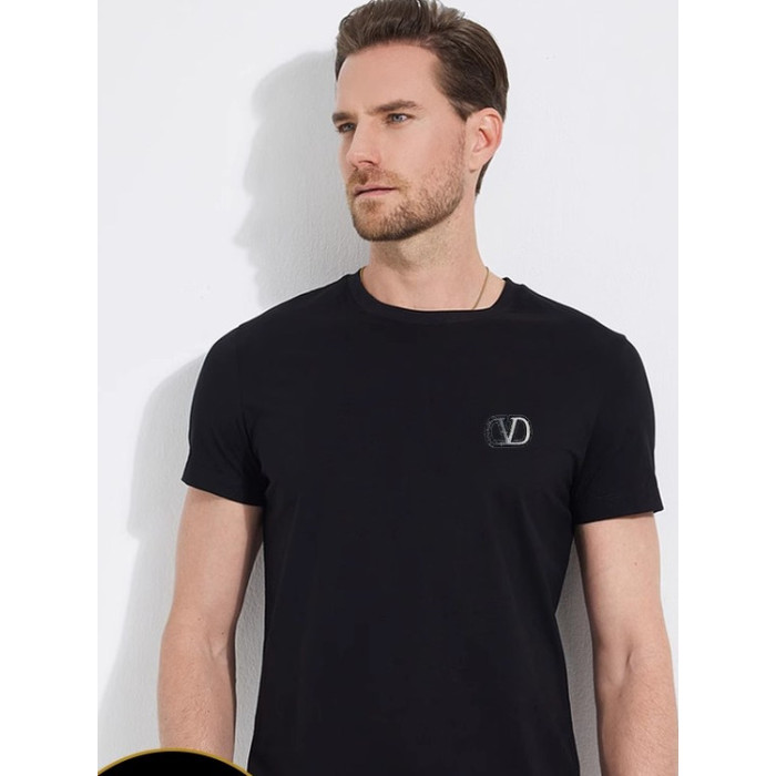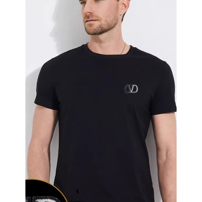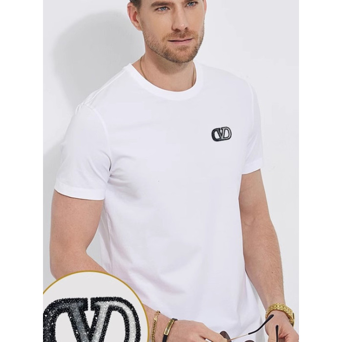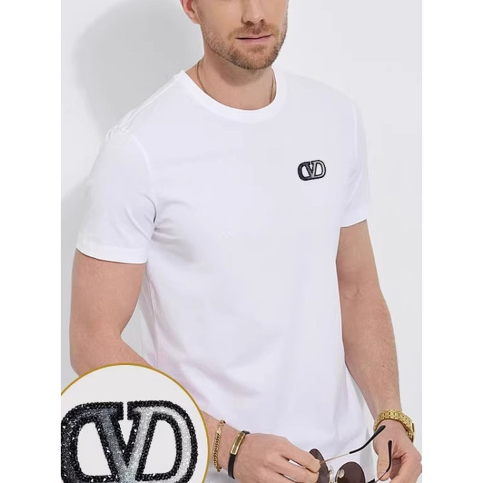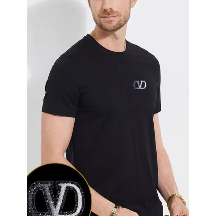 新款歐貨潮牌絲光棉短袖男T恤休閒圓領純色燙鑽大碼寬松打底體恤