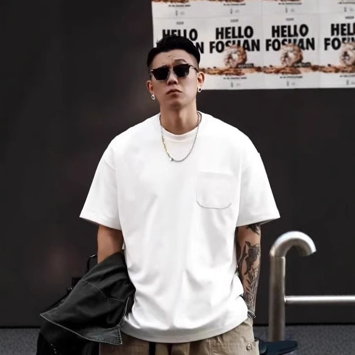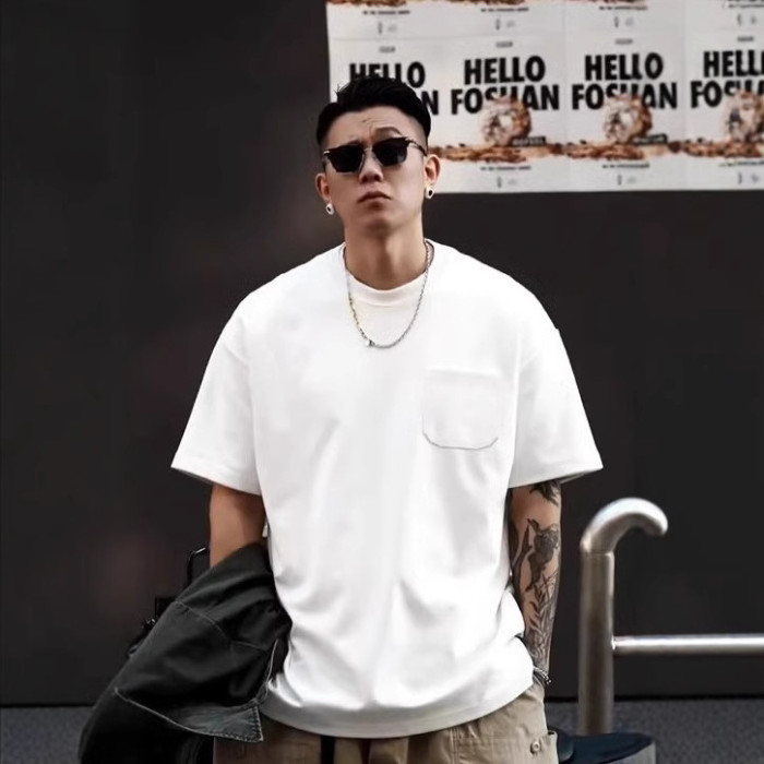 美式簡約短袖男t恤2025夏季新款高街潮牌圓領寬松休閒T恤男裝