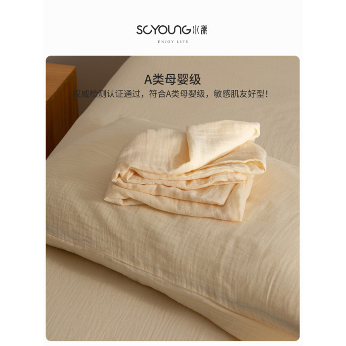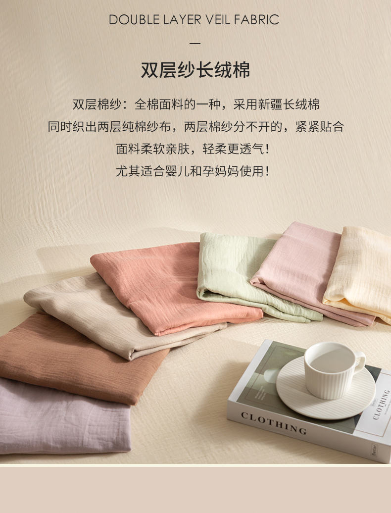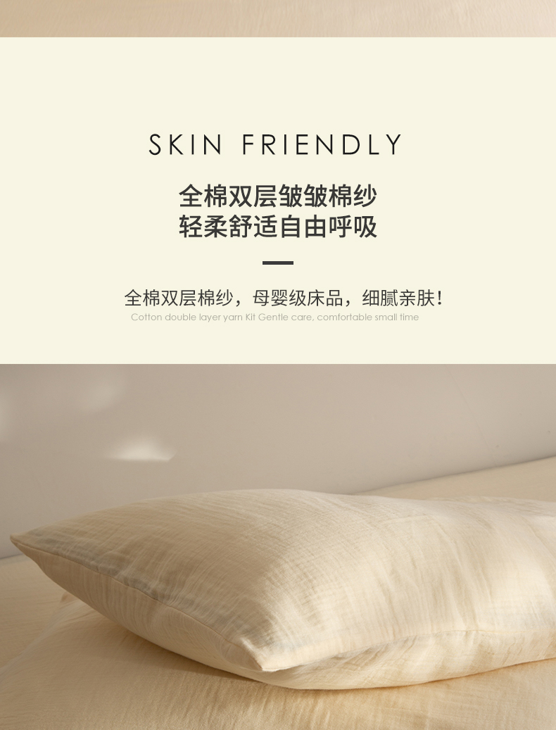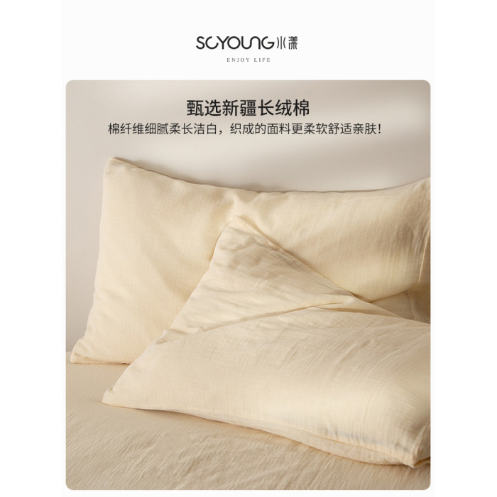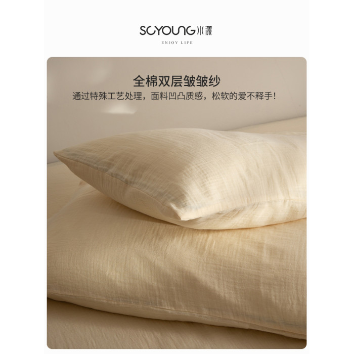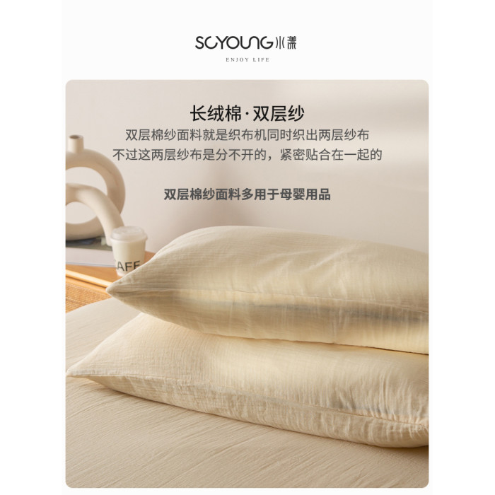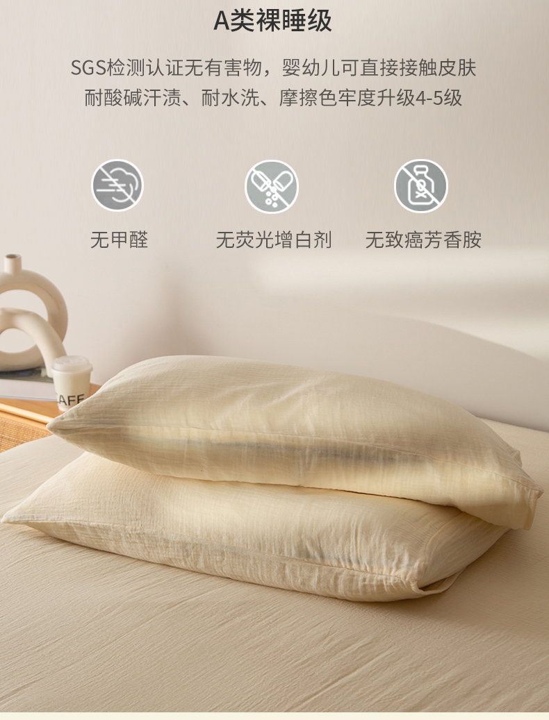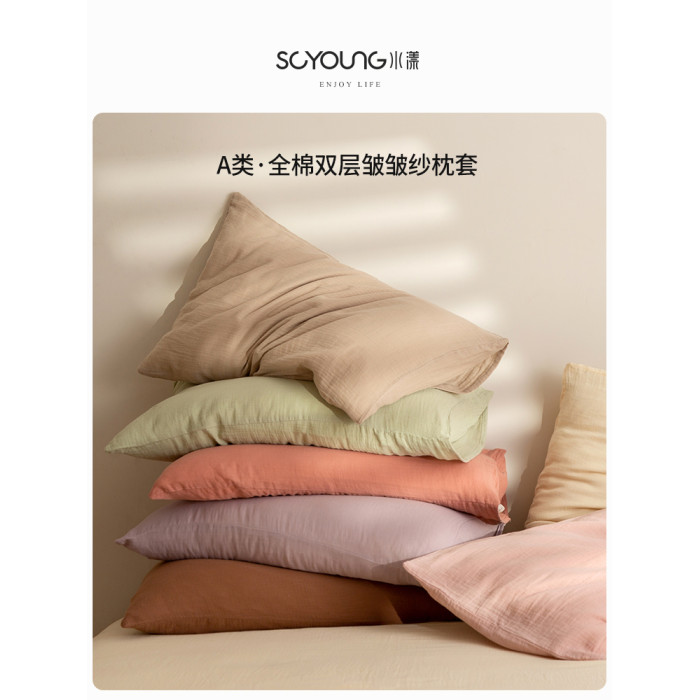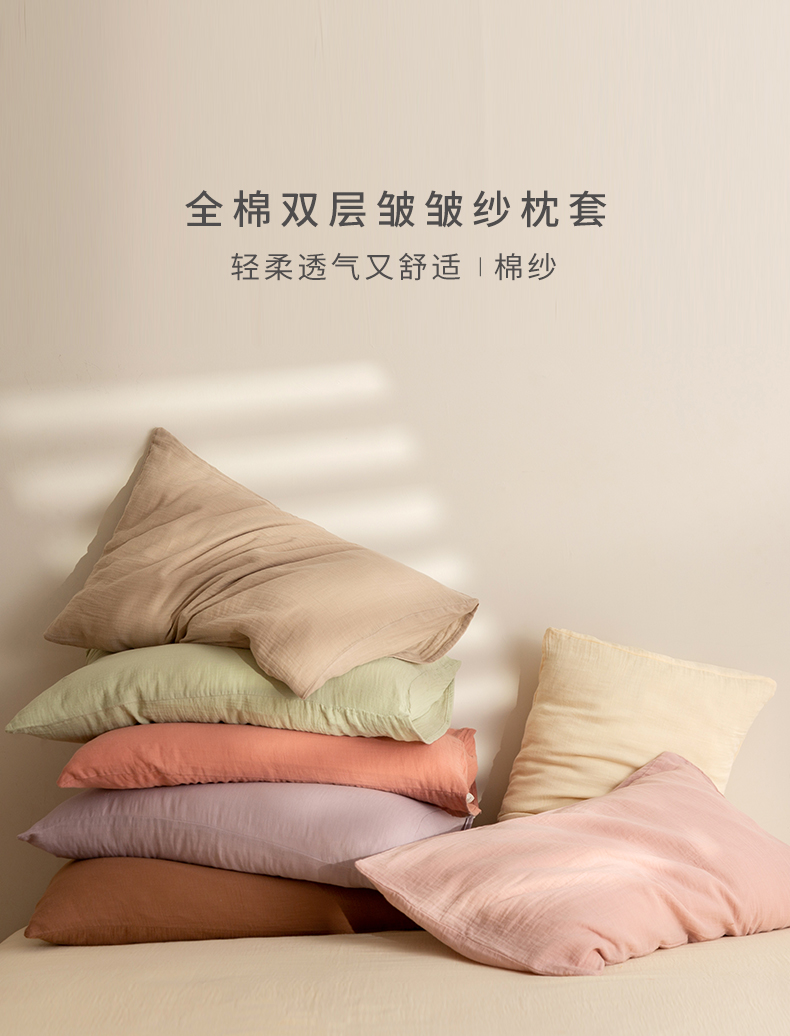 簡約A類全棉雙層皺皺紗布枕套純棉柔軟枕頭套一對裝純色枕巾家用