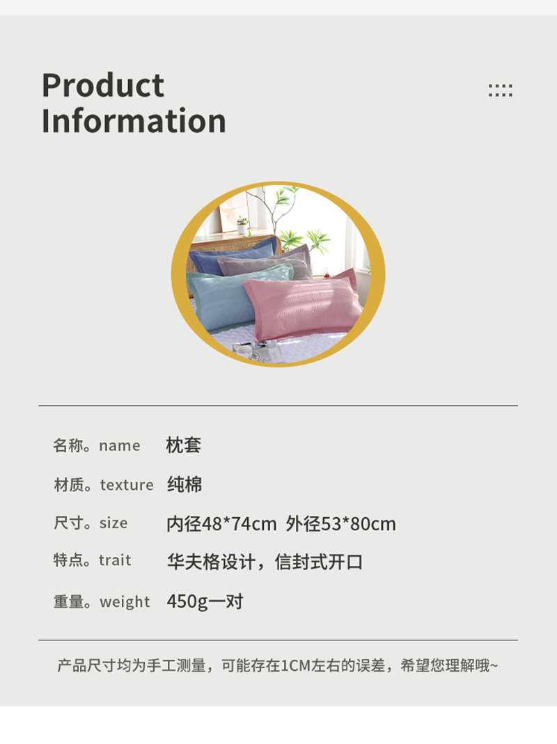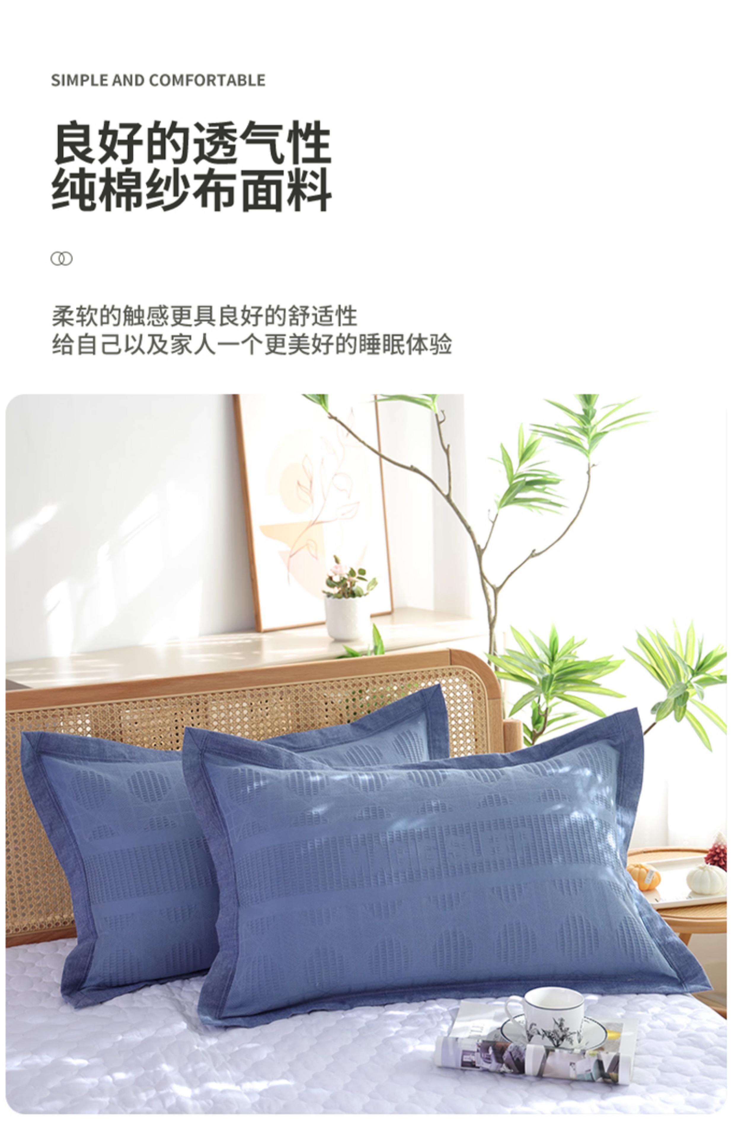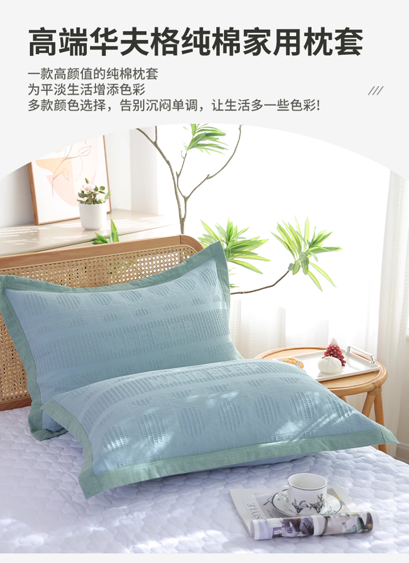 華夫格純棉紗布枕套一對裝成人家用枕頭套柔軟透氣吸汗枕芯內膽套