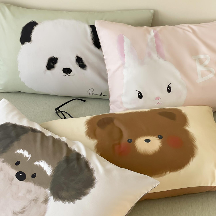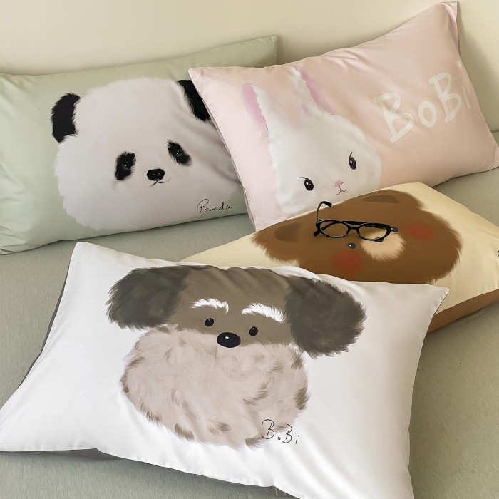 在耳邊秋冬純棉100s磨毛單衹枕套卡通長絨棉全棉枕頭套48*74cm