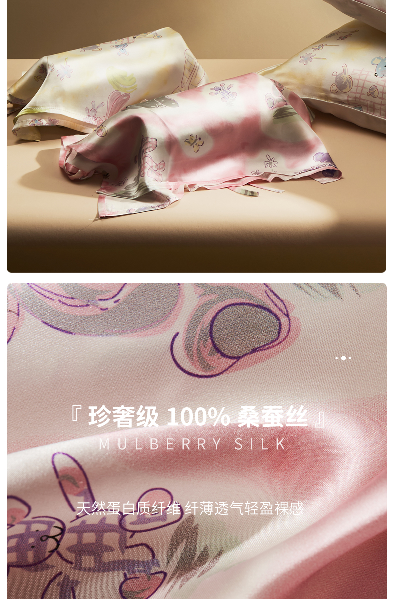柳汐兒童真絲枕巾100%桑蠶絲 高檔成人親子卡通絲綢真絲枕巾枕套