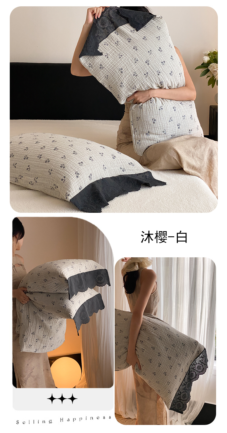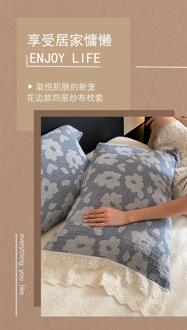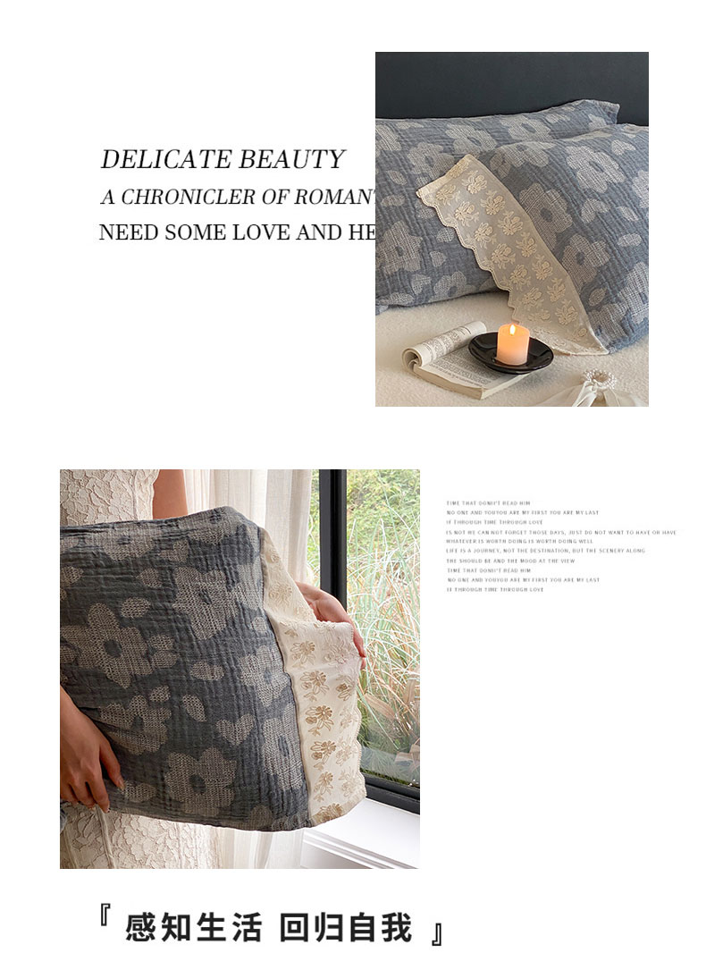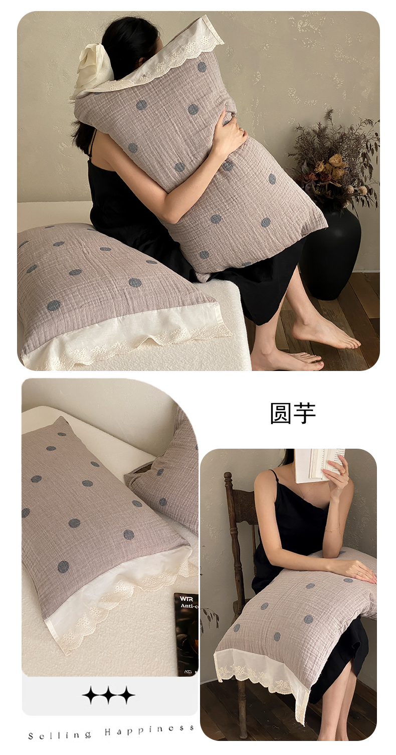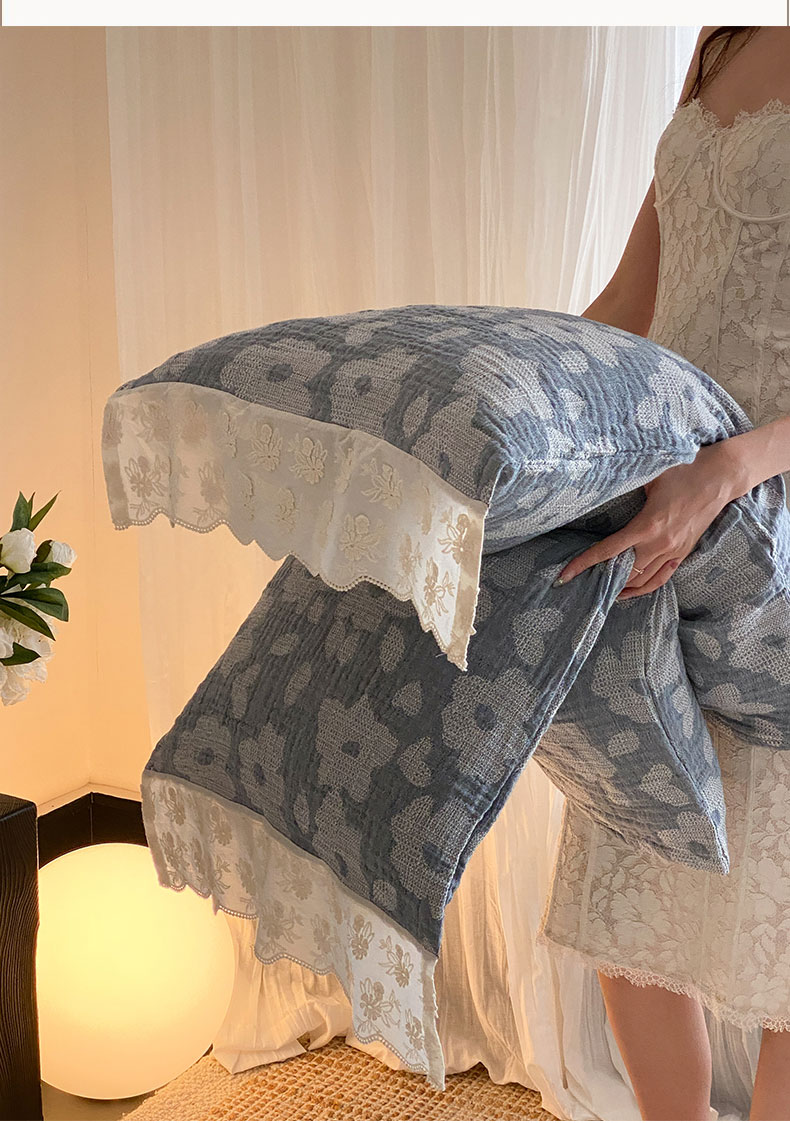 法式四層紗布枕套花邊款一對裝 48/74cm