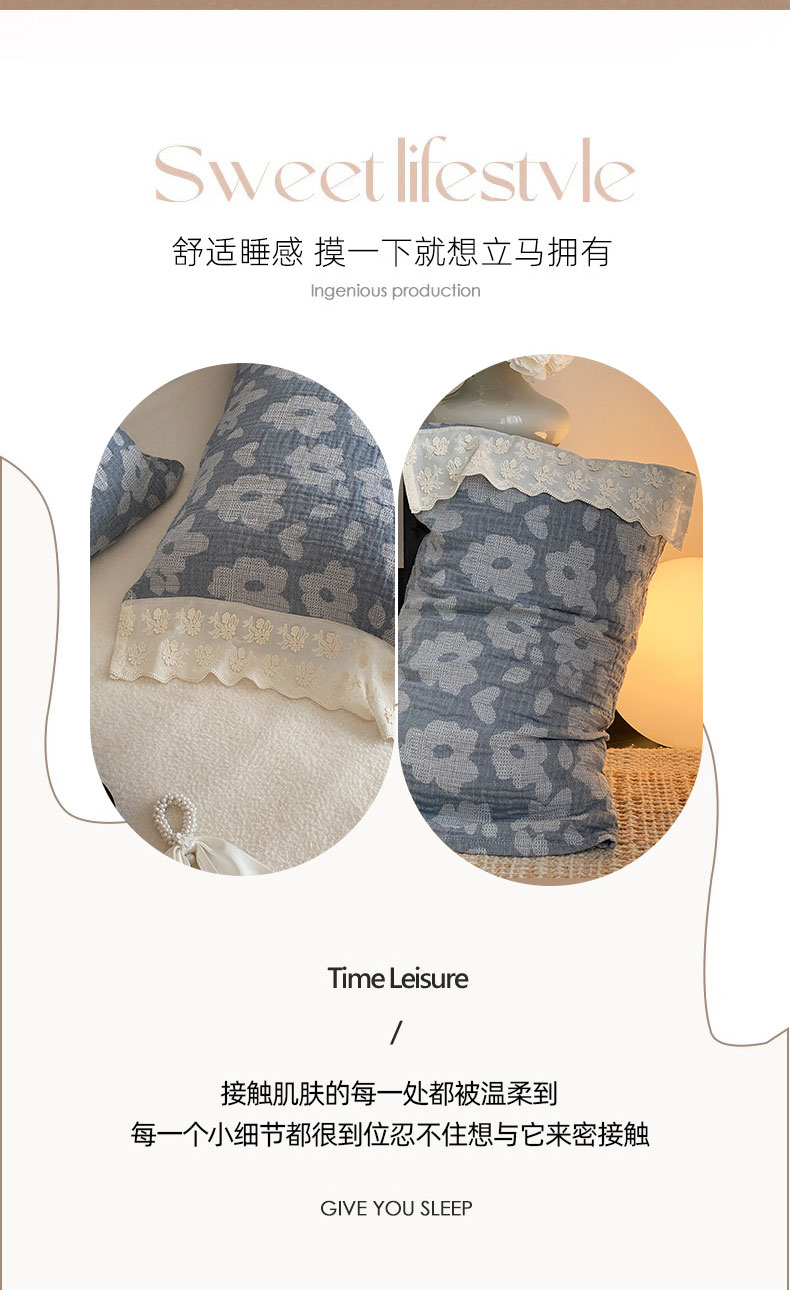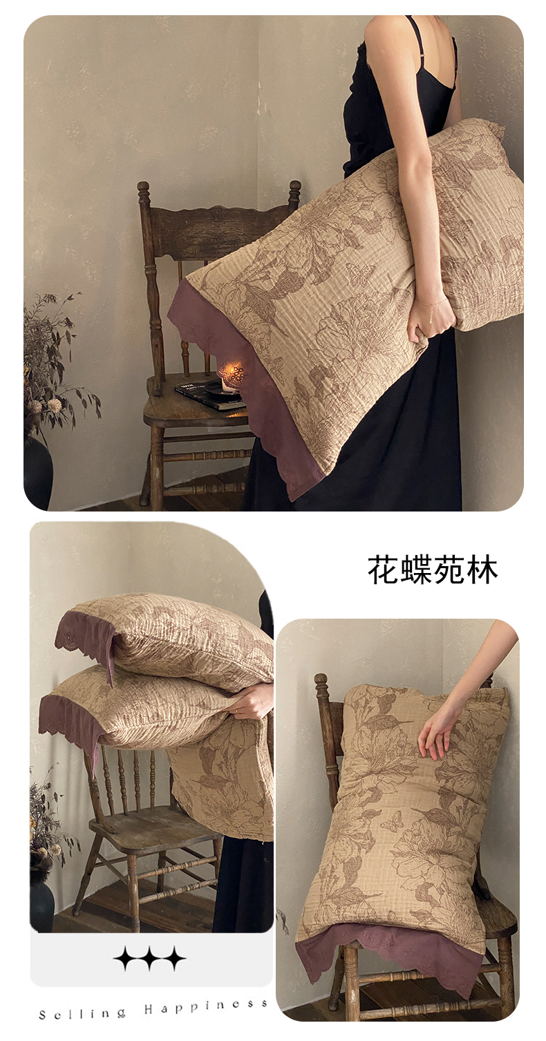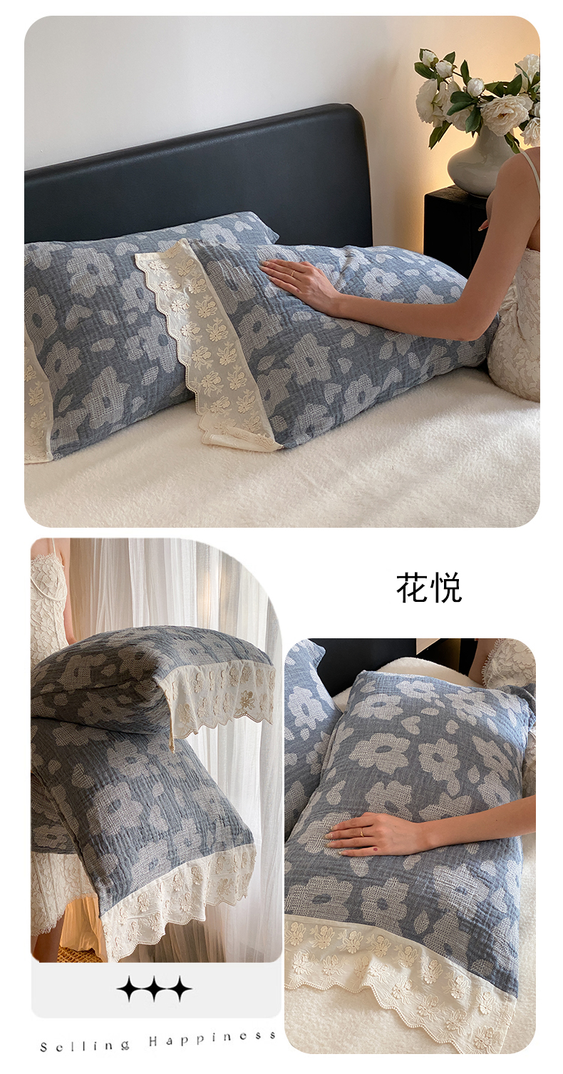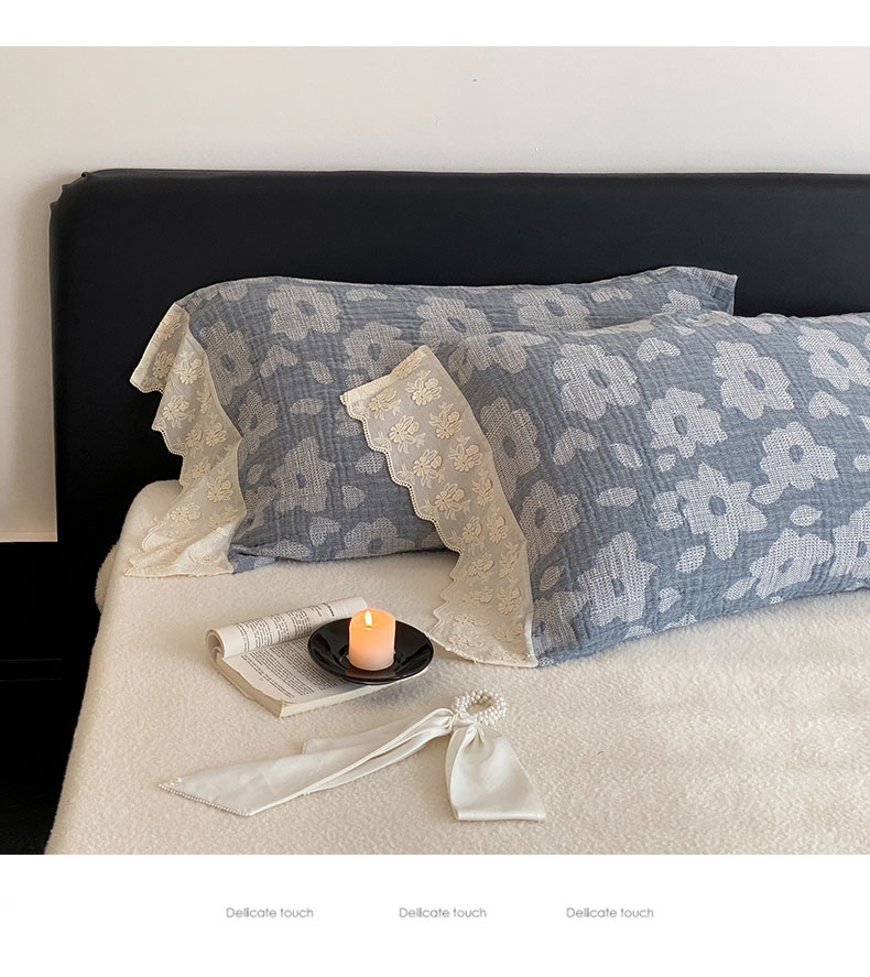 法式四層紗布枕套花邊款一對裝 48/74cm