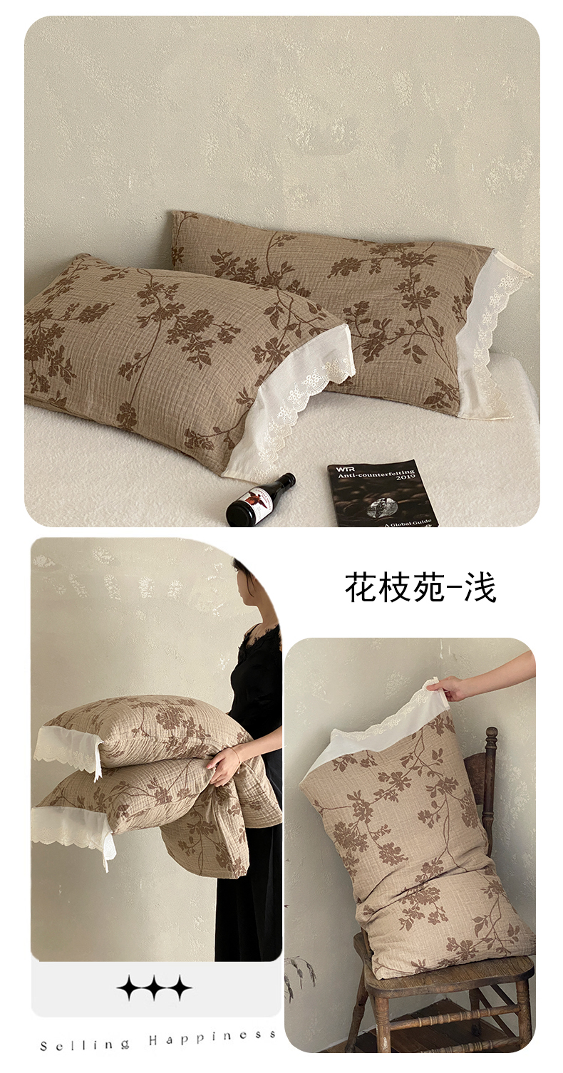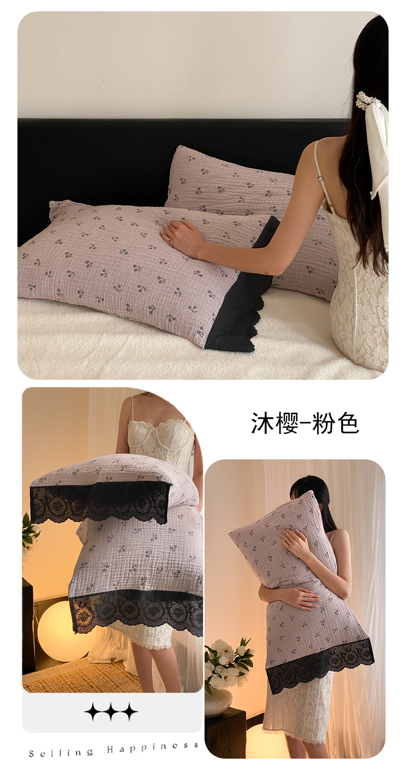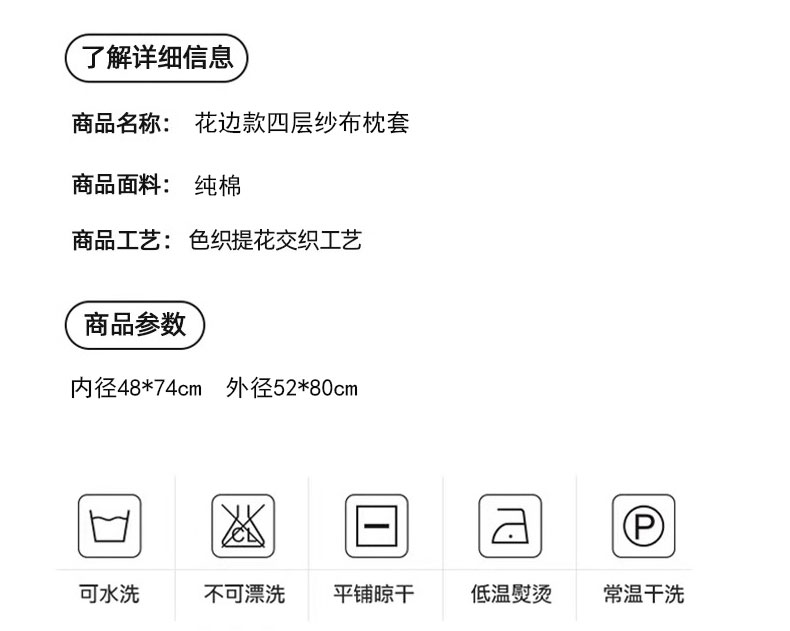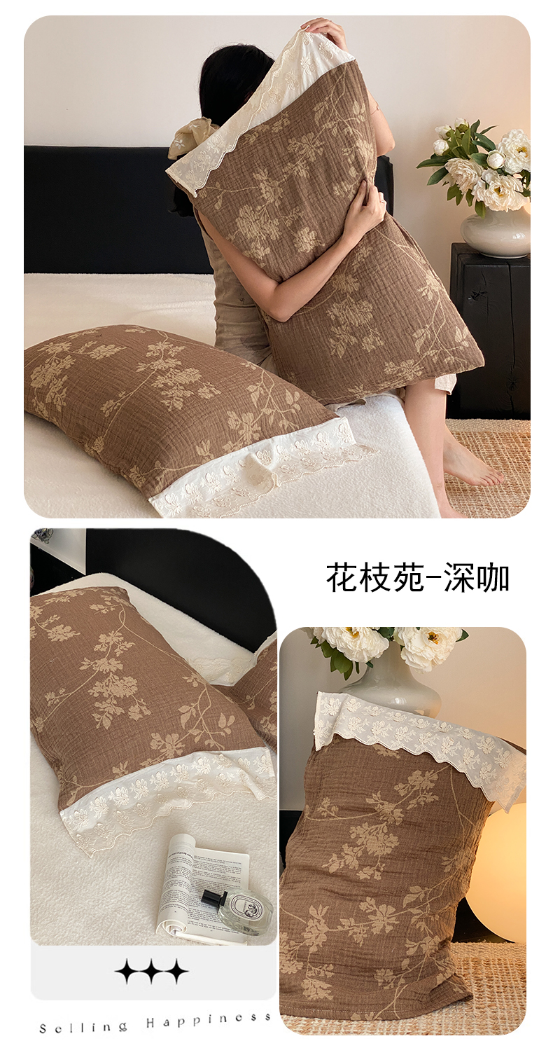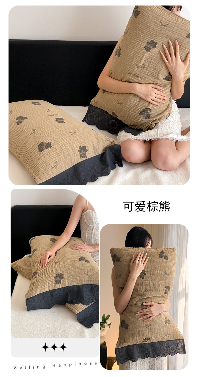 法式四層紗布枕套花邊款一對裝 48/74cm