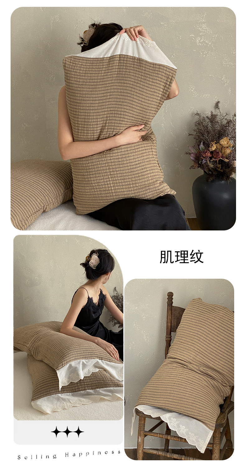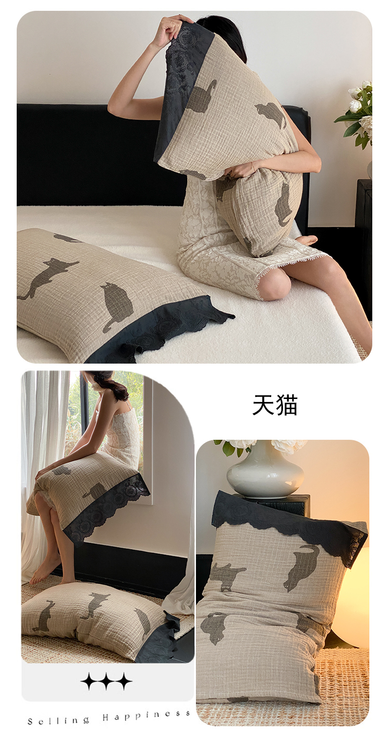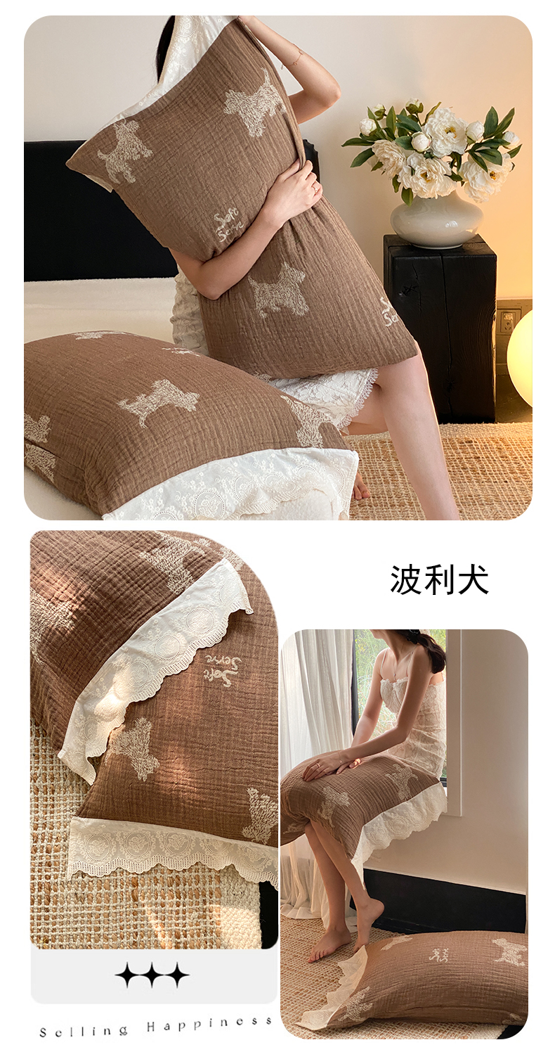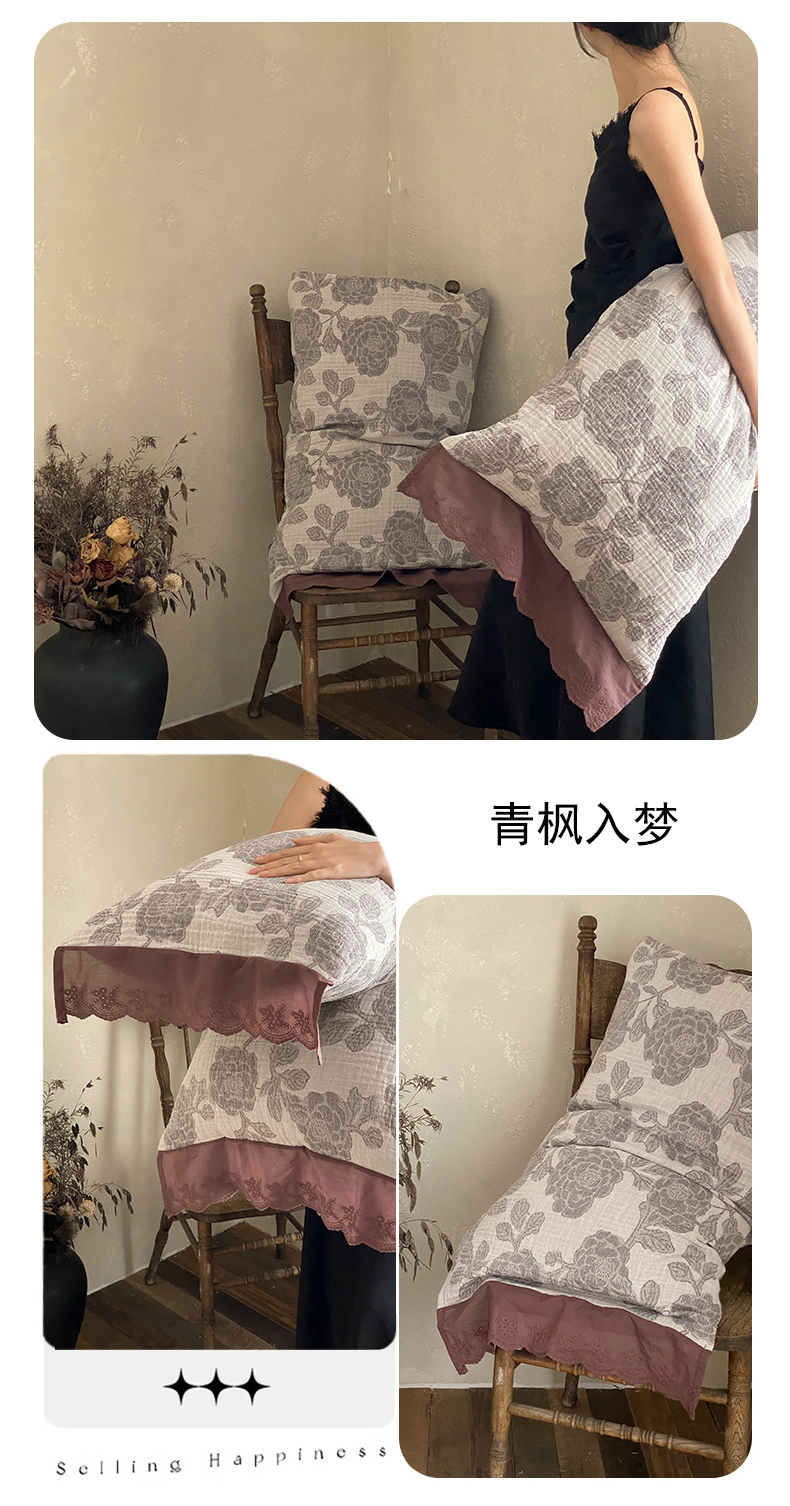 法式四層紗布枕套花邊款一對裝 48/74cm