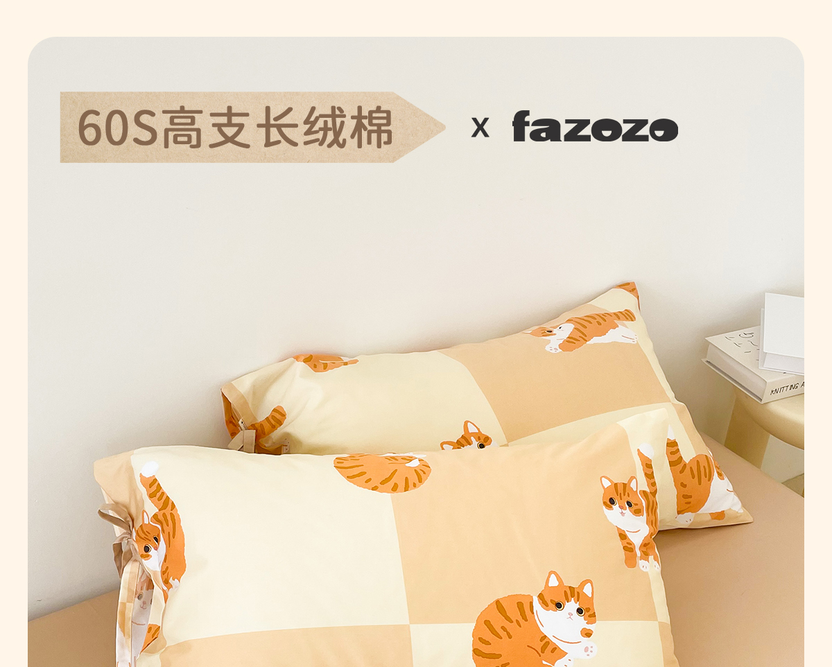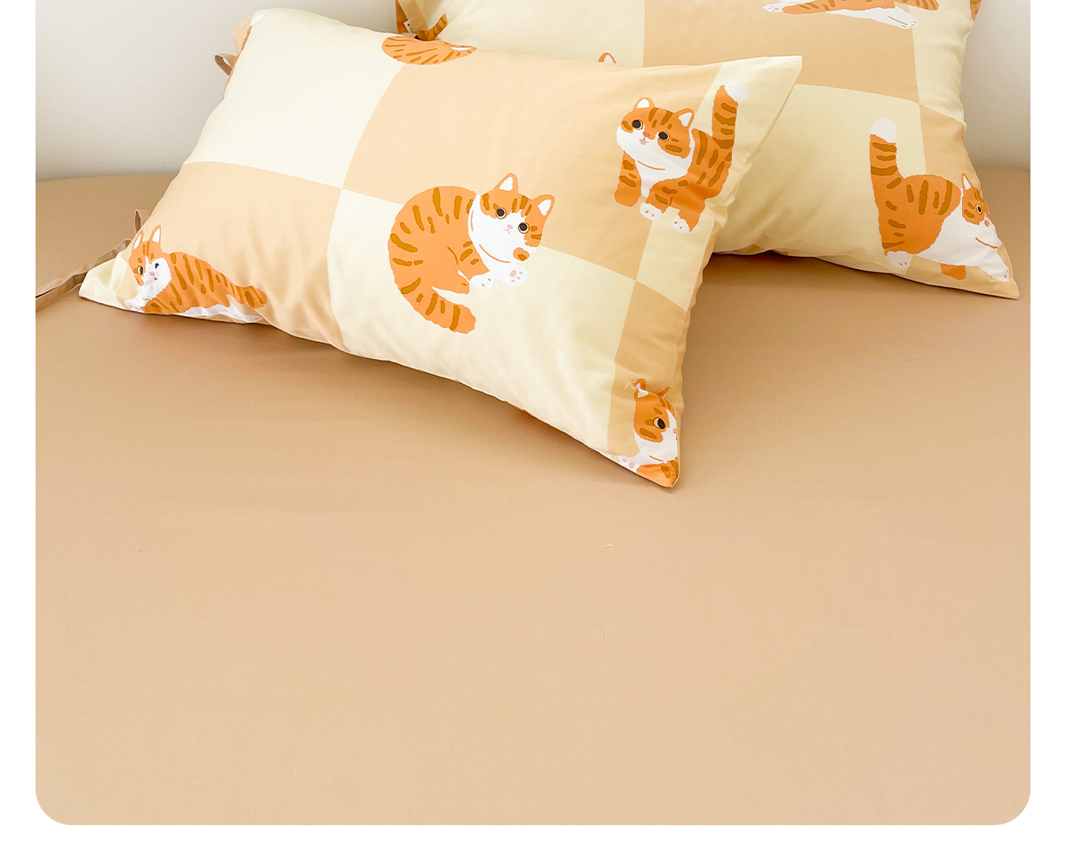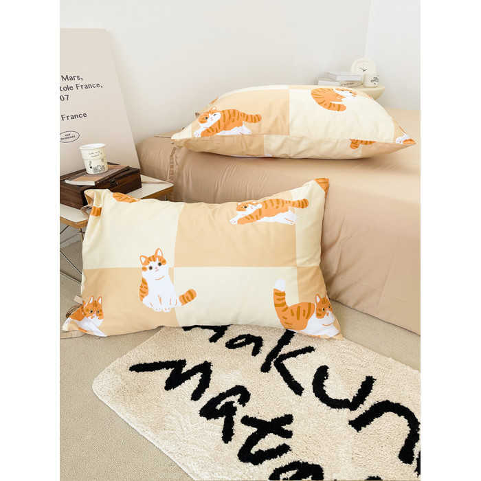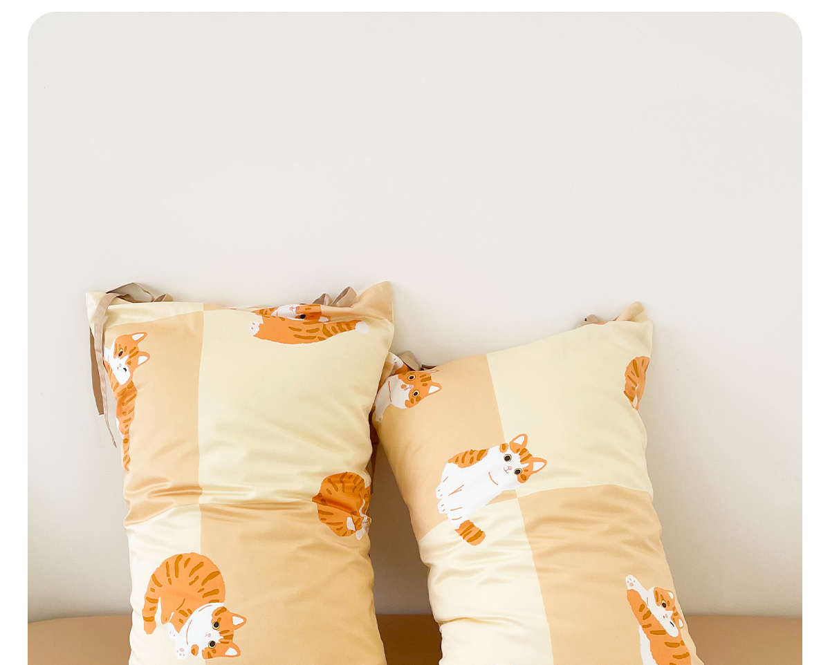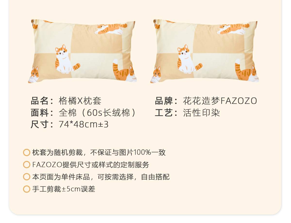 格橘 原創貓咪插畫60支長絨棉格子全棉純棉枕套單件舒適枕芯罩