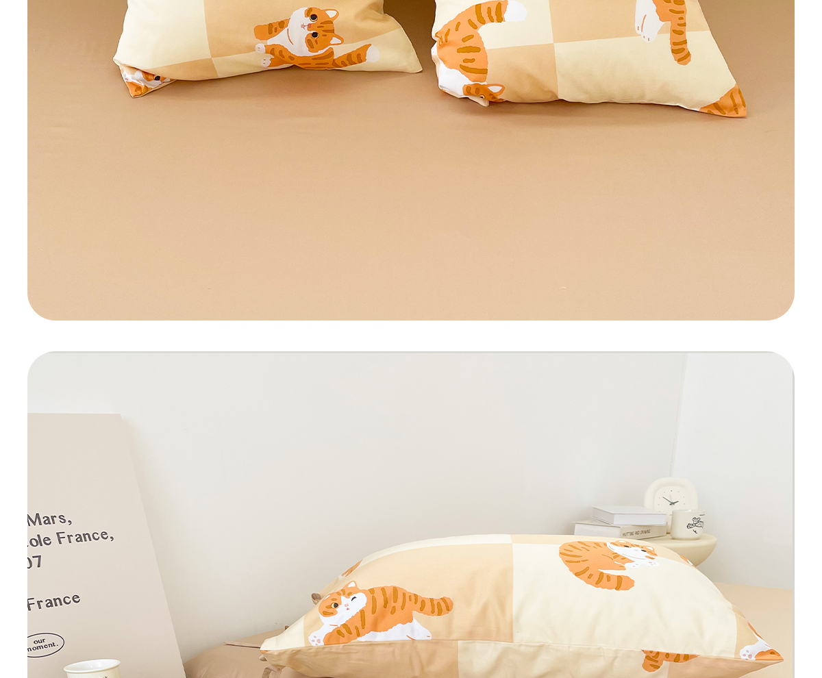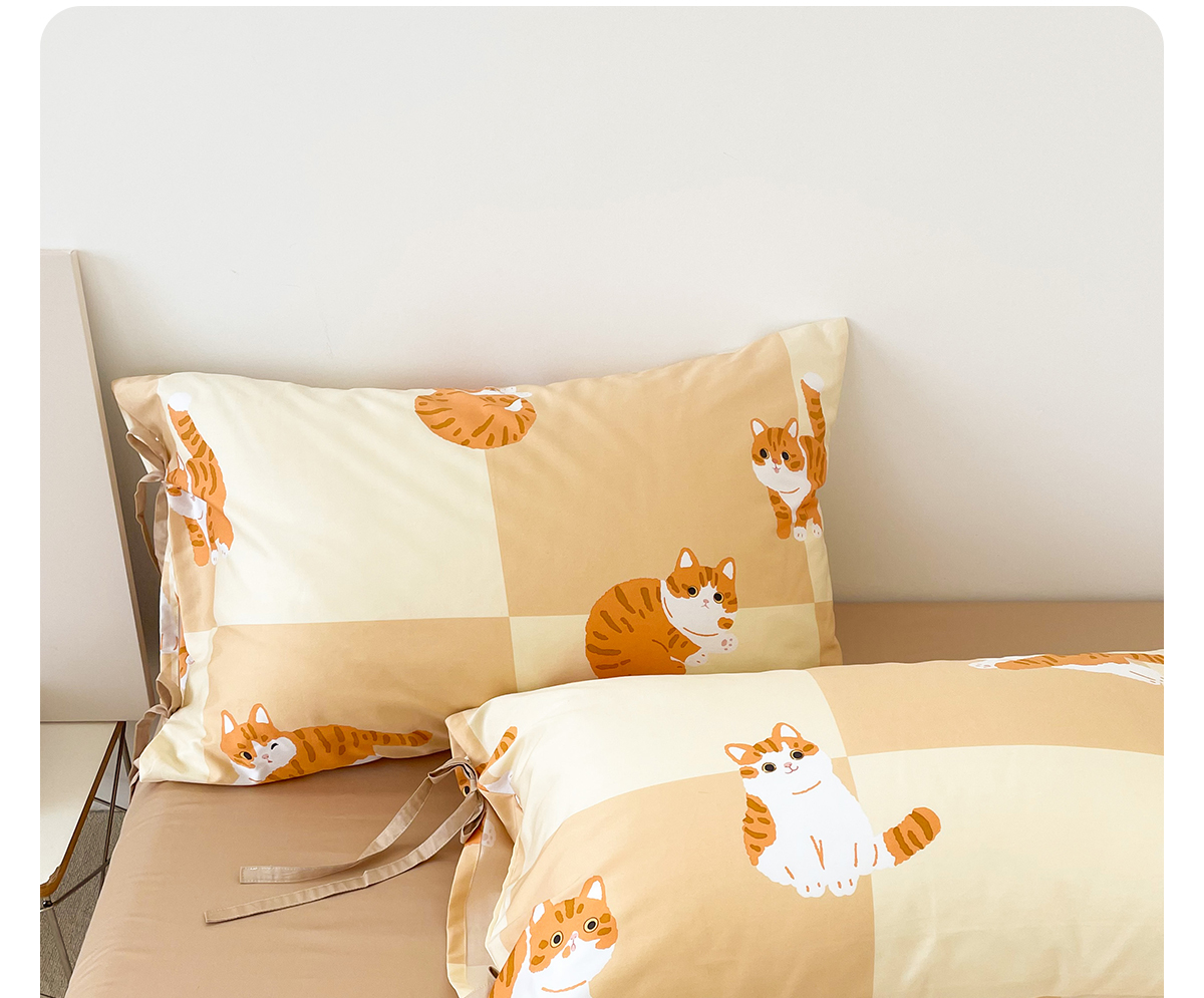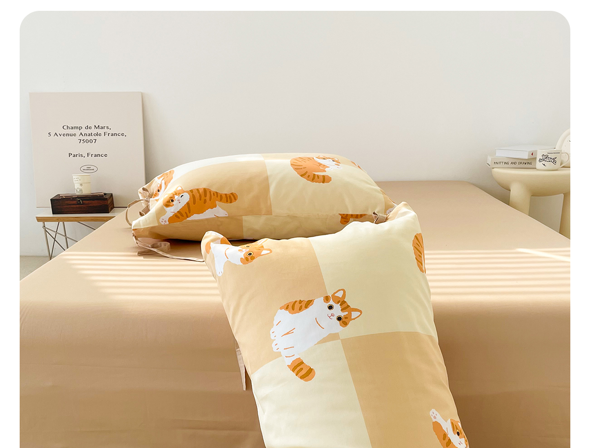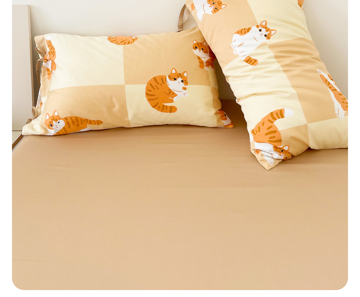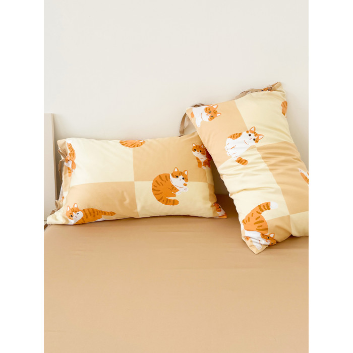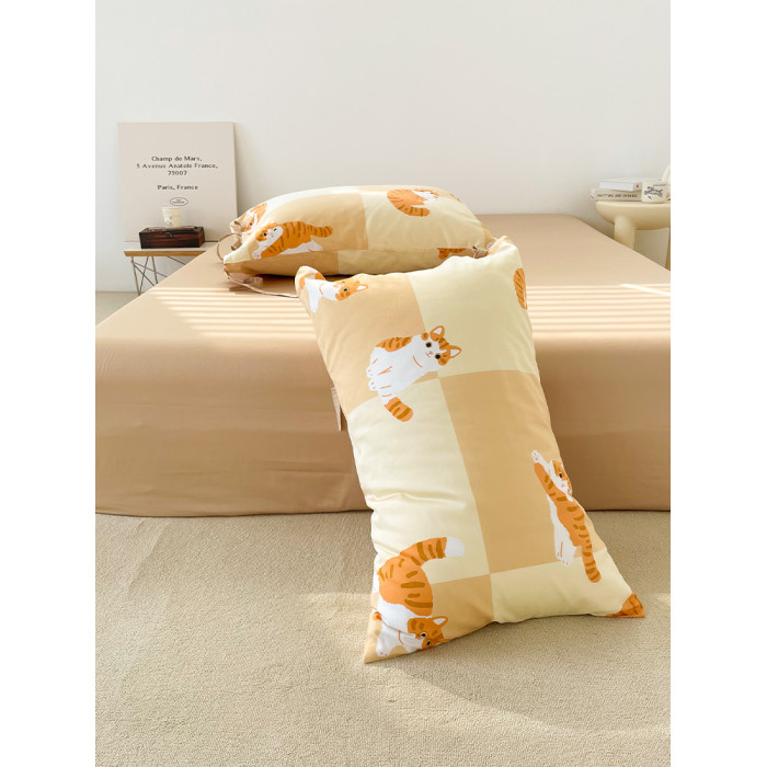 格橘 原創貓咪插畫60支長絨棉格子全棉純棉枕套單件舒適枕芯罩