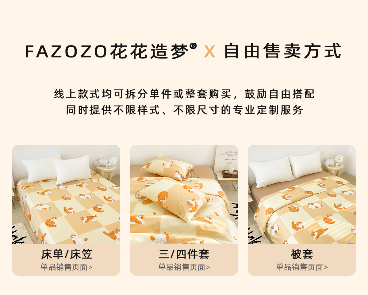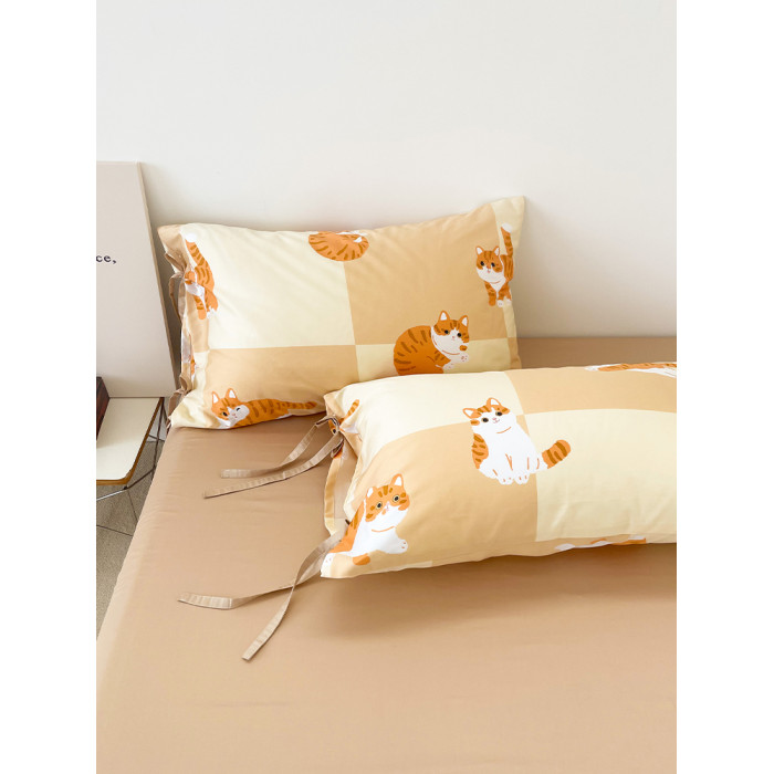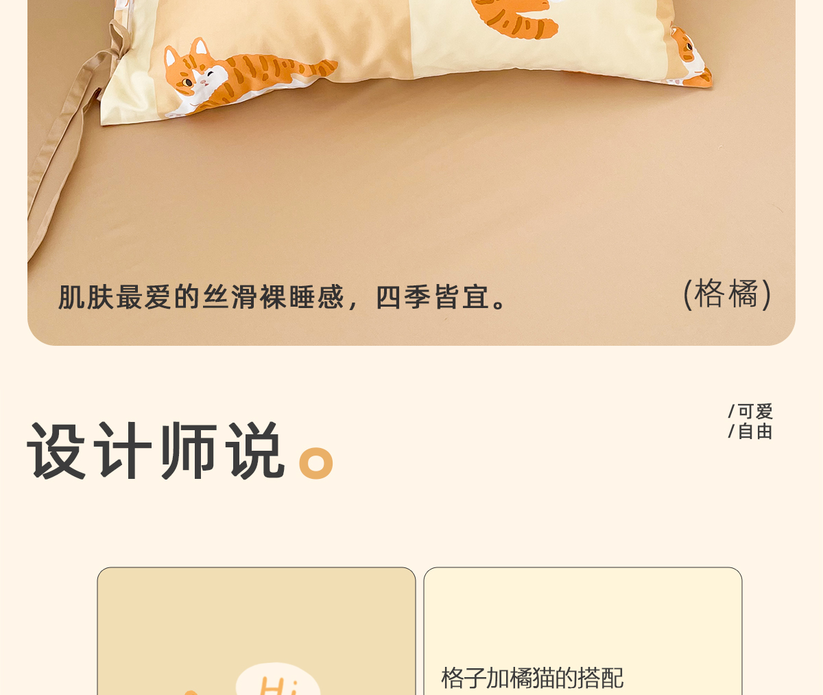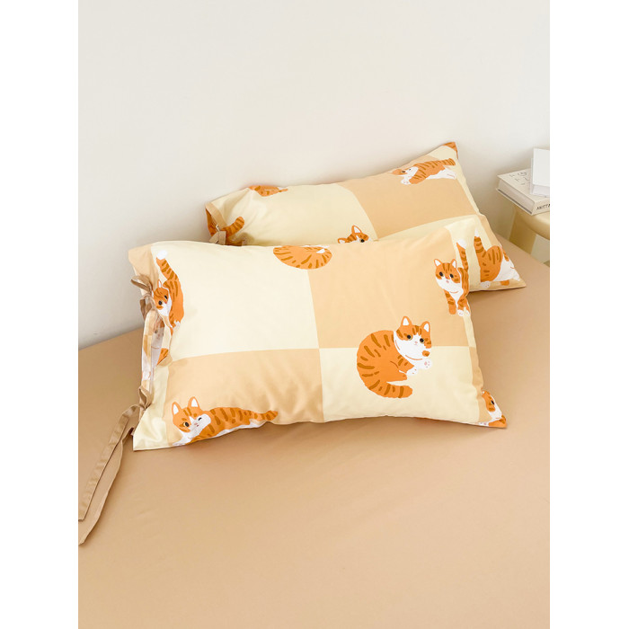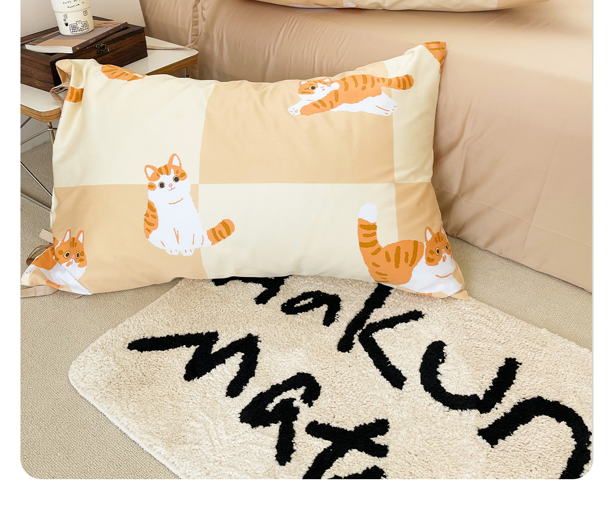 格橘 原創貓咪插畫60支長絨棉格子全棉純棉枕套單件舒適枕芯罩
