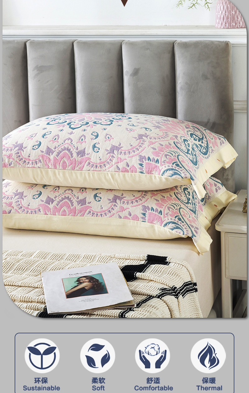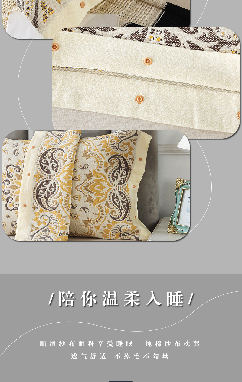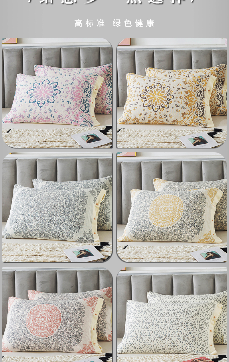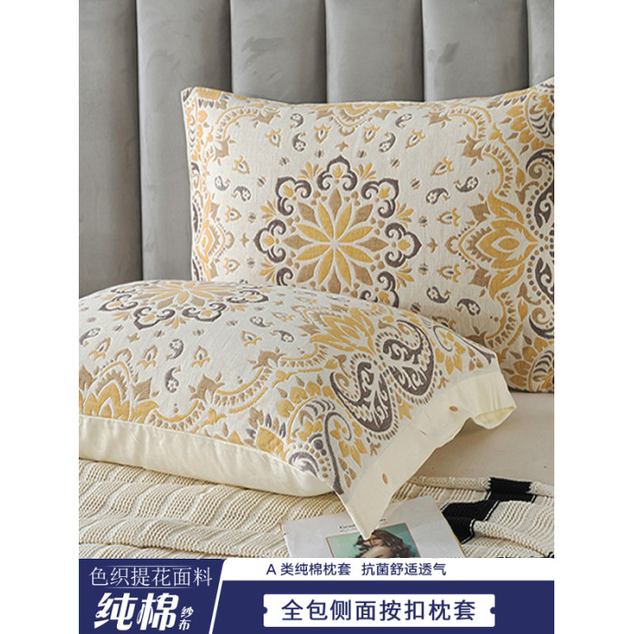 全包四季純棉紗布按釦枕套一對裝家用成人防滑加厚全棉枕巾枕頭套