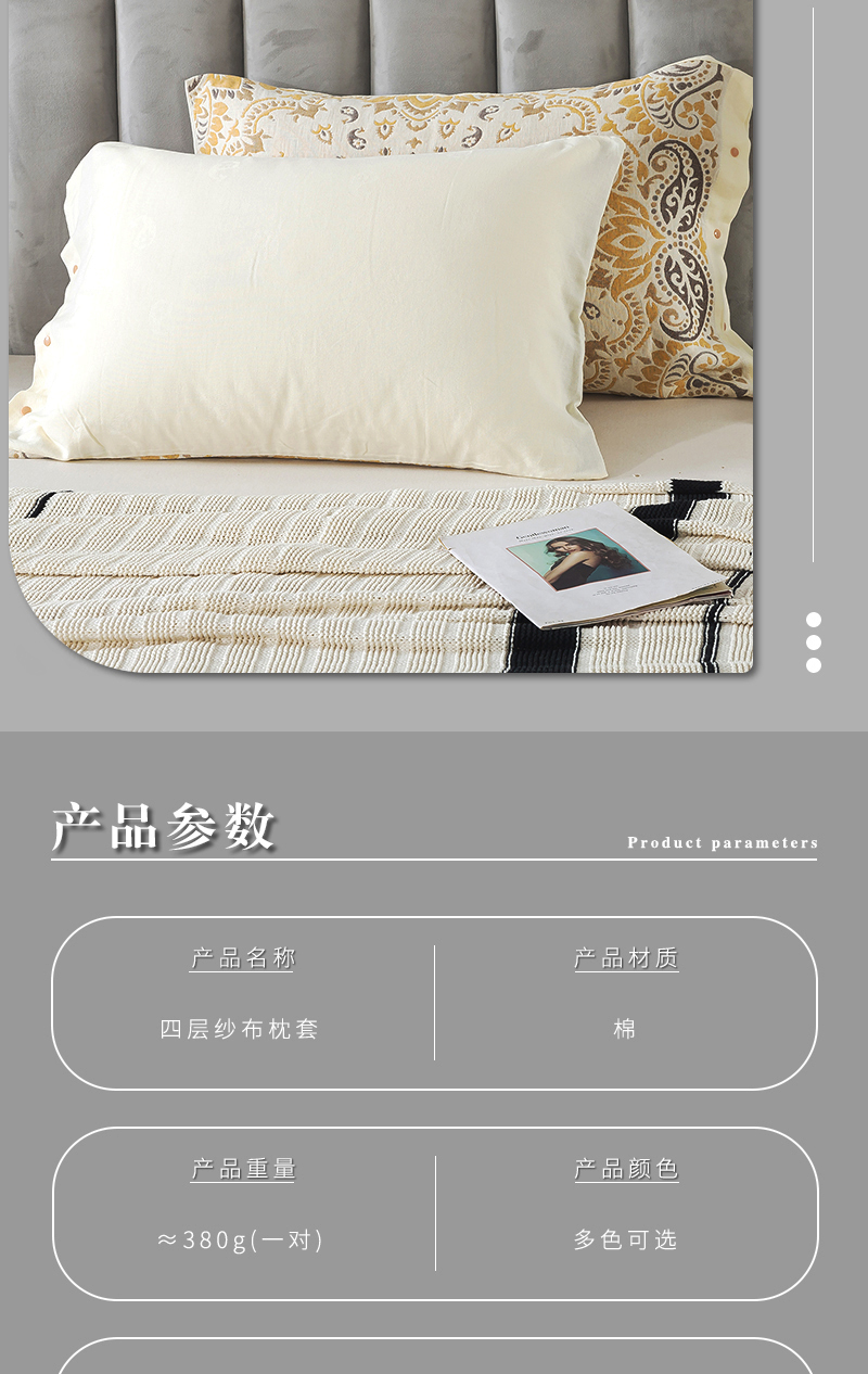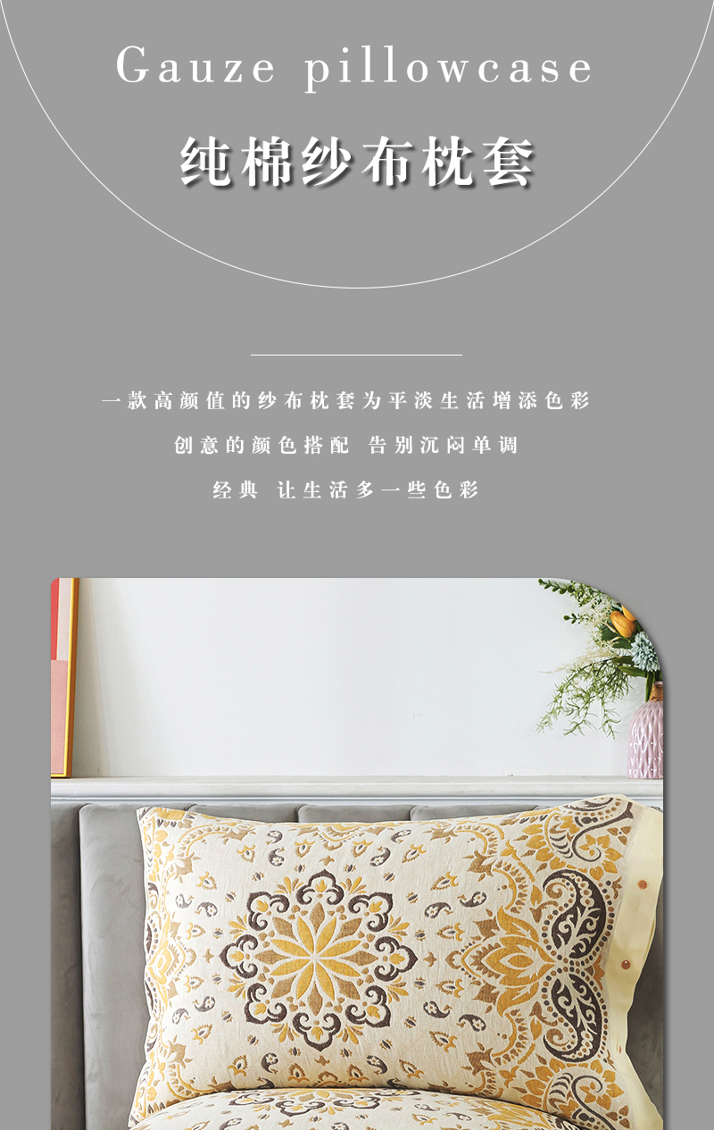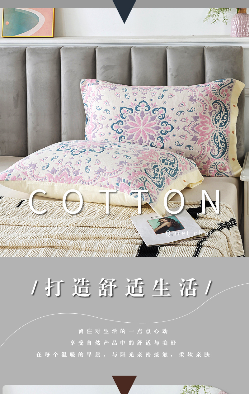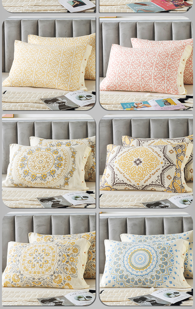 全包四季純棉紗布按釦枕套一對裝家用成人防滑加厚全棉枕巾枕頭套
