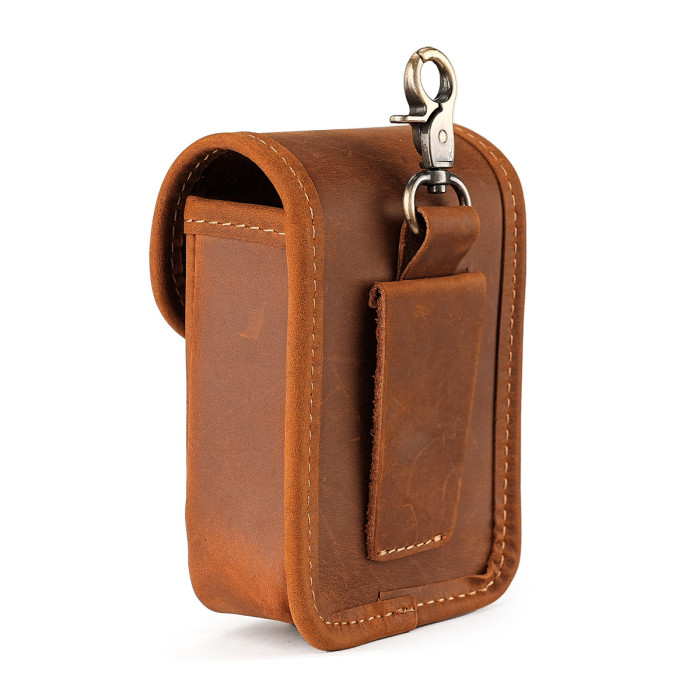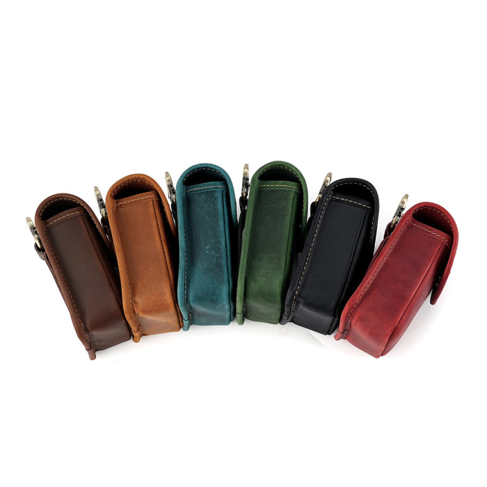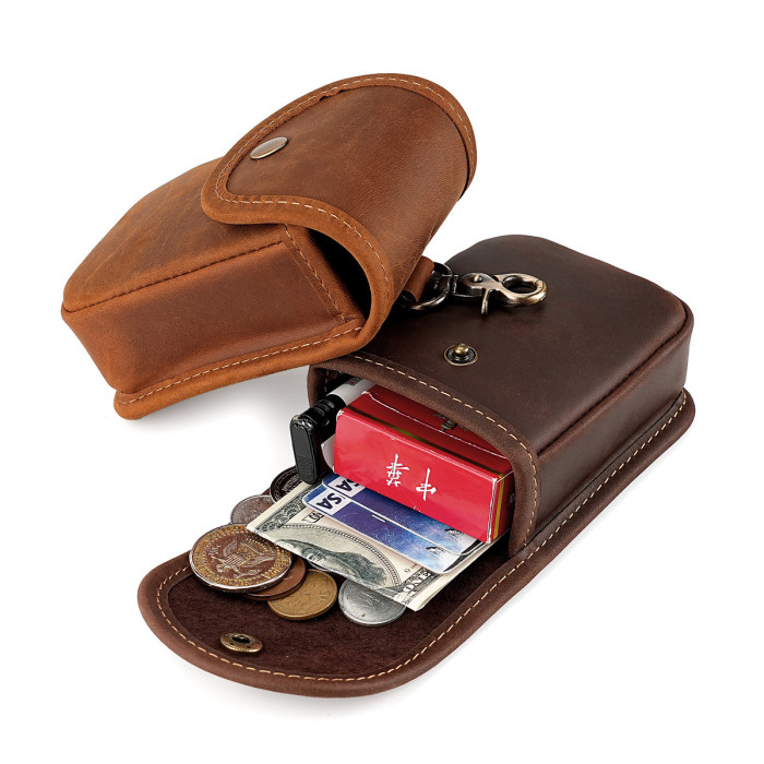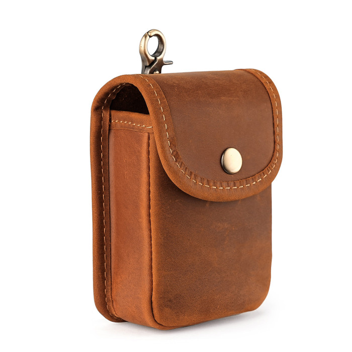 新款男士香菸包瘋馬皮小腰包腰挎鑰匙包頭層牛皮零錢包復古收納包