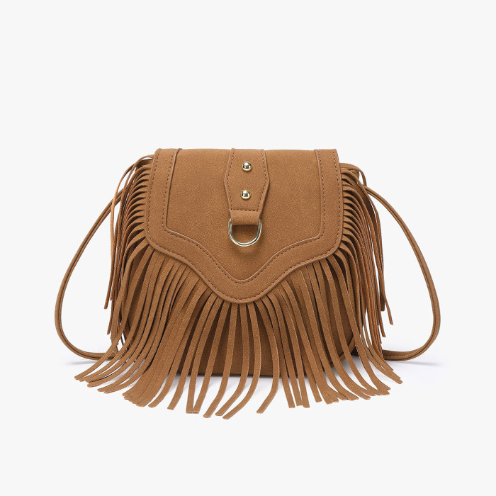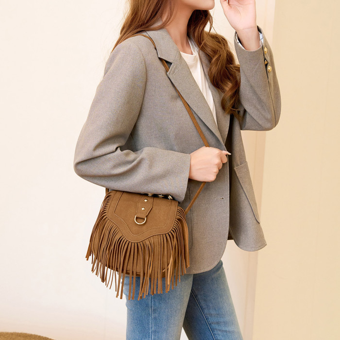 波西米亞流蘇斜後背包歐美復古大容量女士通勤百搭單肩包