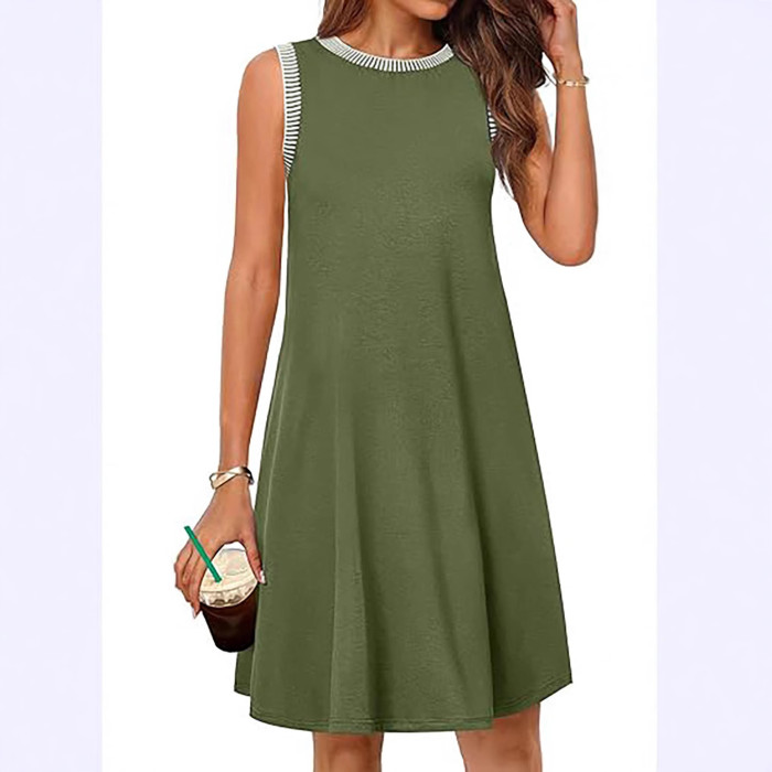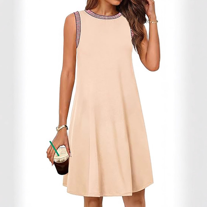 女式休閒無袖迷你連衣裙 2025 夏季背心裙圓領寬松沙灘背心