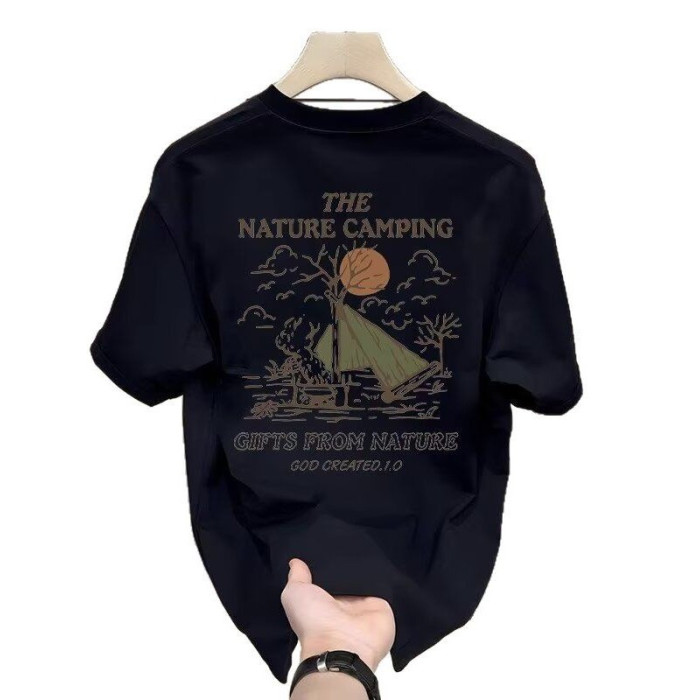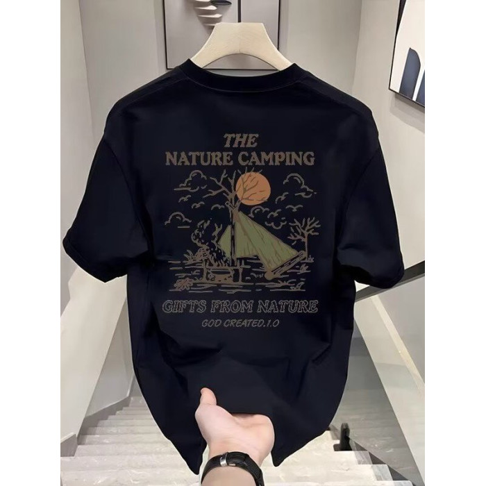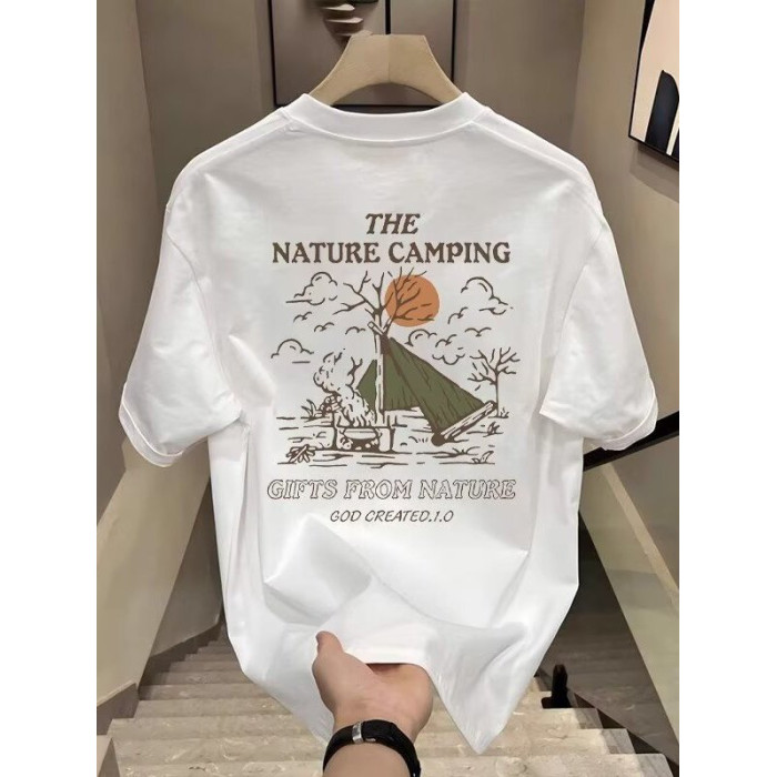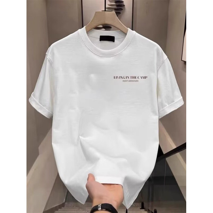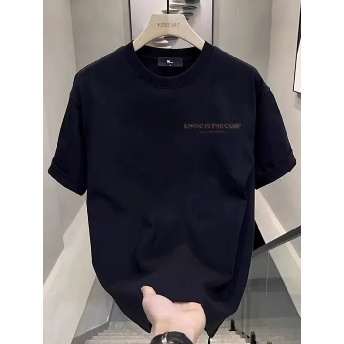 重磅純棉短袖男T恤夏季新款潮流體恤寬松大碼休閒五分袖圓領上衣
