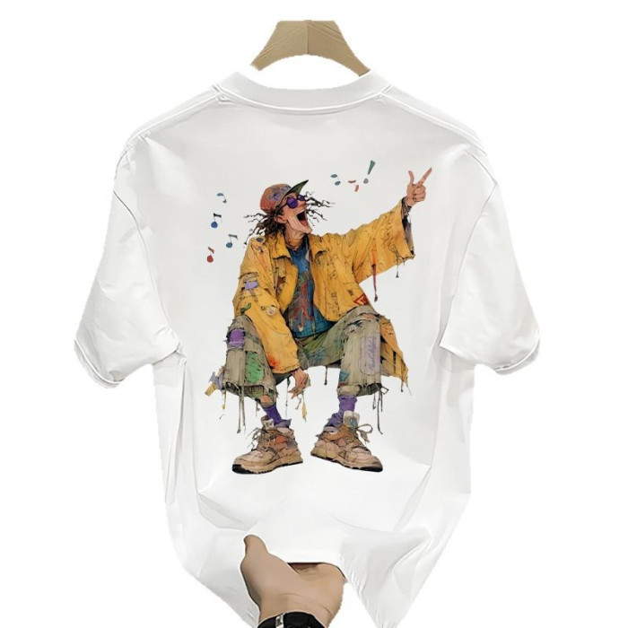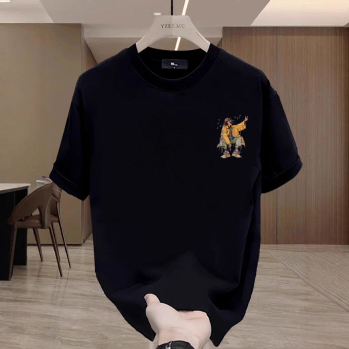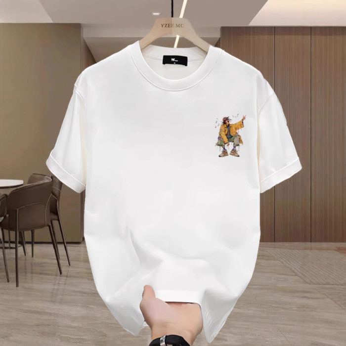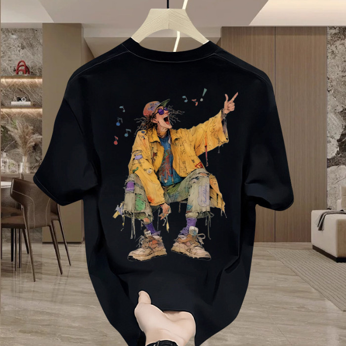 Yuquan夏季痞帥印花短袖男T恤2025新款潮牌純棉休閒百搭寬松男裝