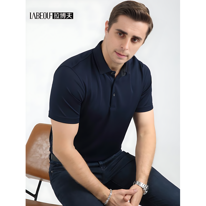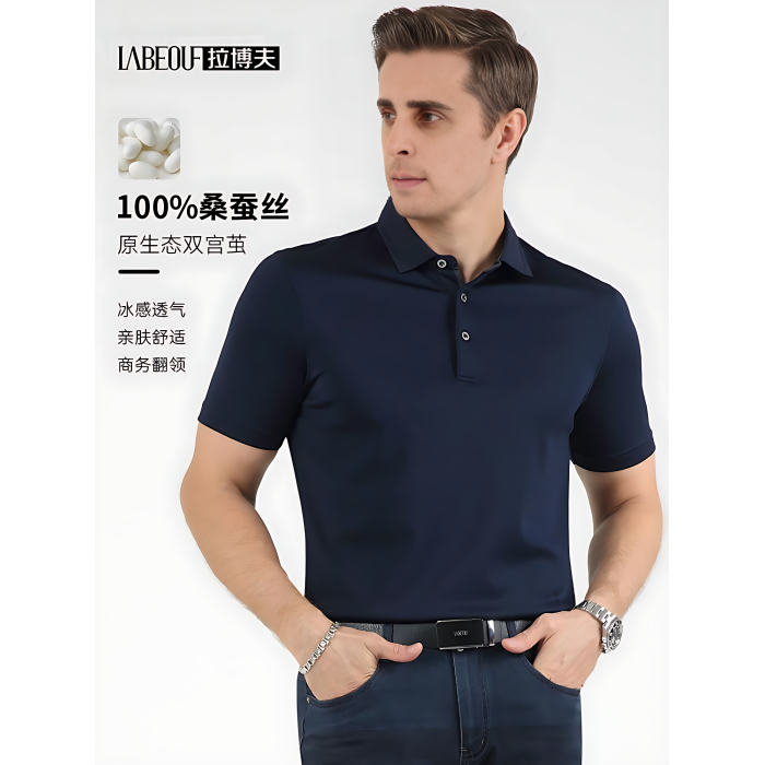拉博夫高級商務100%桑蠶絲短袖男T恤中年涼感親膚真絲男士POLO衫