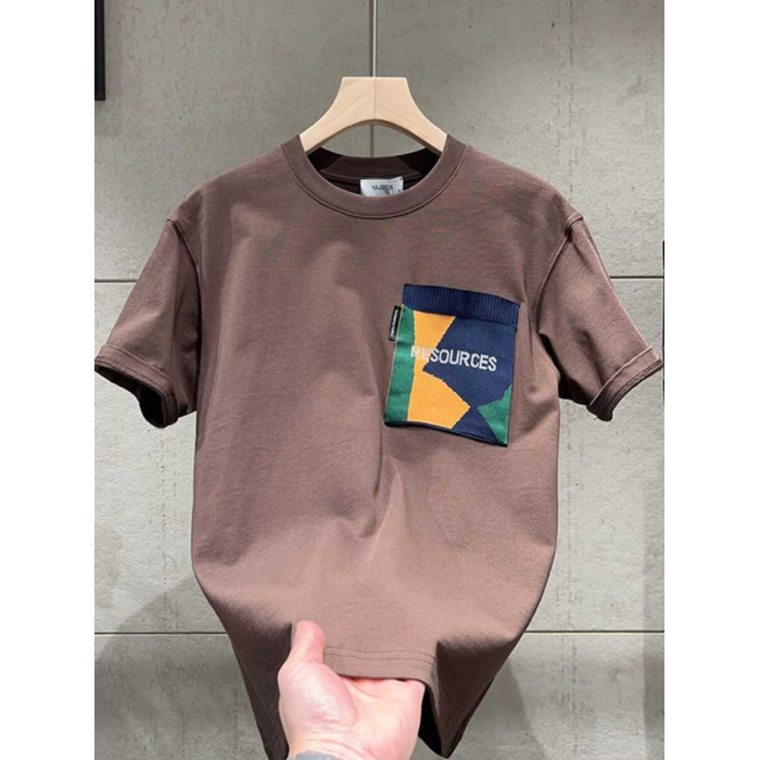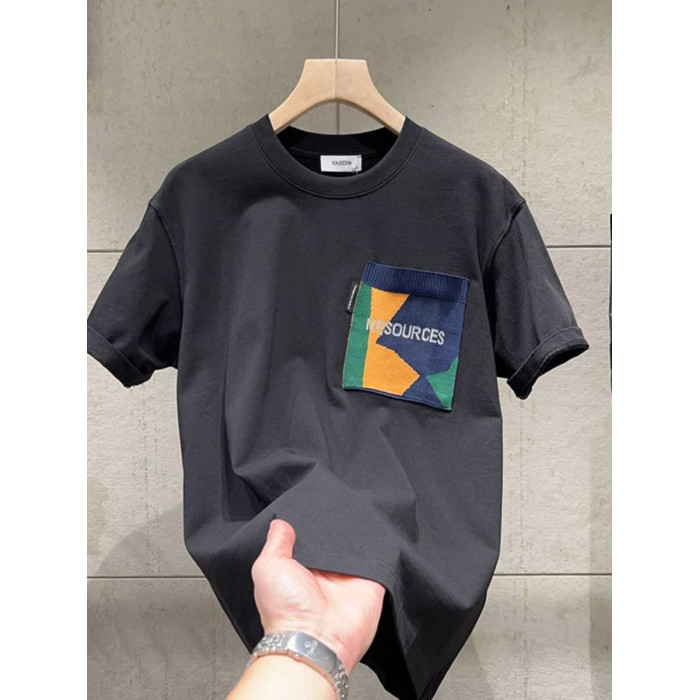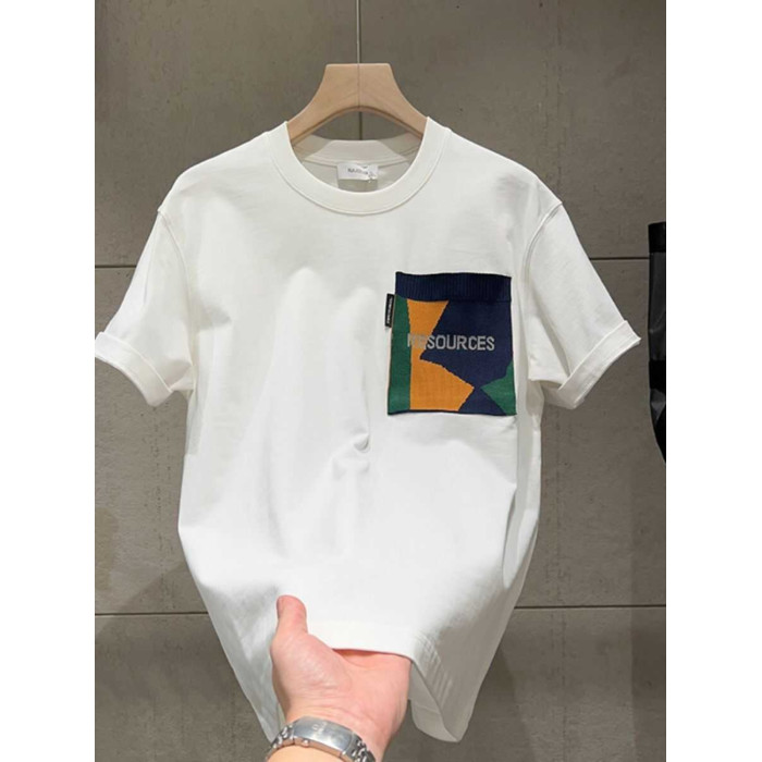 韓國專櫃純棉拼色口袋短袖男t恤百搭潮牌寬松休閒半袖春季體恤男