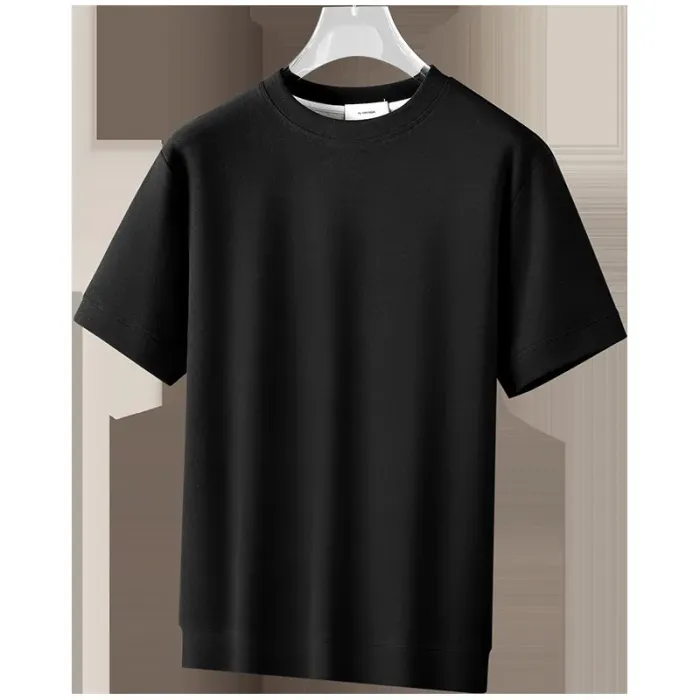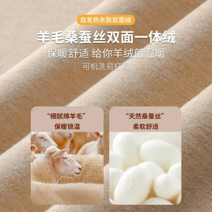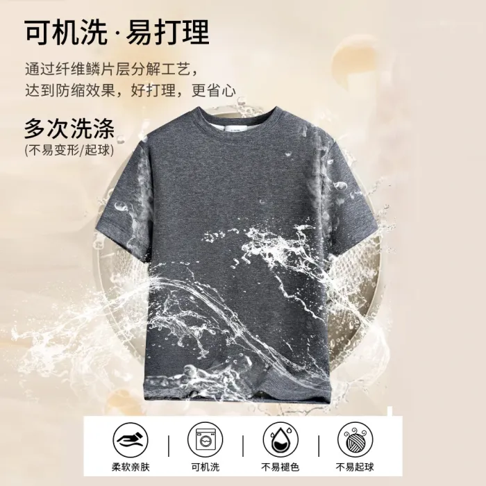 羊毛蠶絲雙面絨短袖男T恤秋冬厚款半袖打底衫純色自髮熱保暖內衣