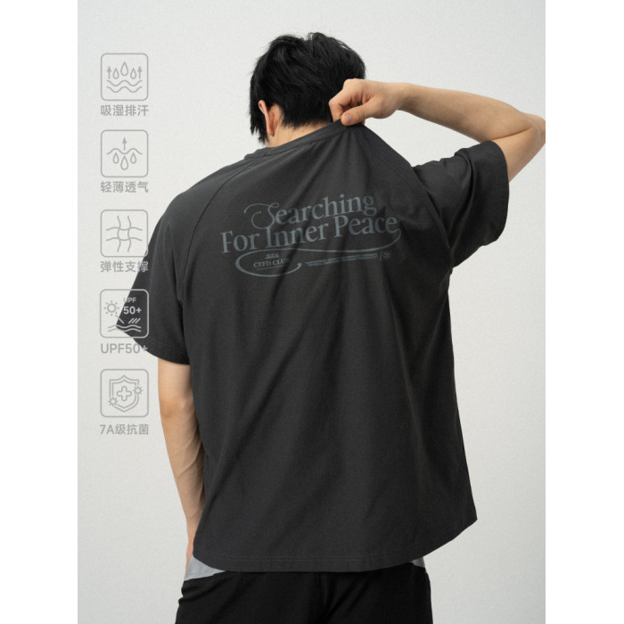 CONTRAFIEND春夏圓領舒適輕薄吸溼速乾戶外男T恤抗菌寬松印花短袖