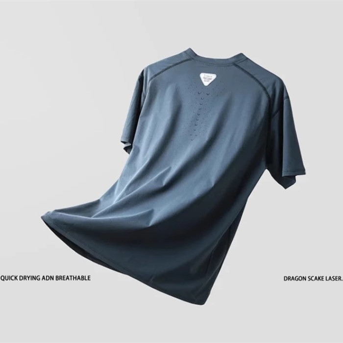 龍鱗戰衣!背部雷射沖孔透氣涼感透氣夏季運動休閒通勤短袖男T恤