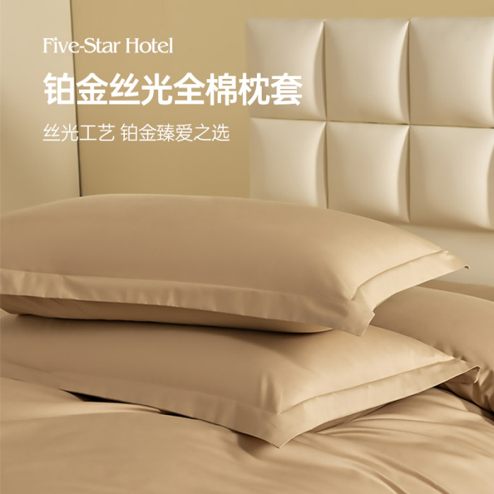 高級鉑金絲光全棉枕套簡約風純色純棉枕芯套一對裝48x74cm枕頭套