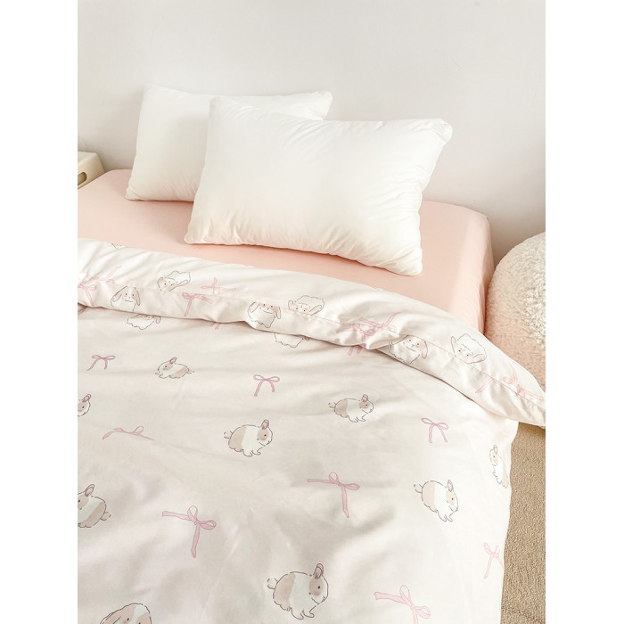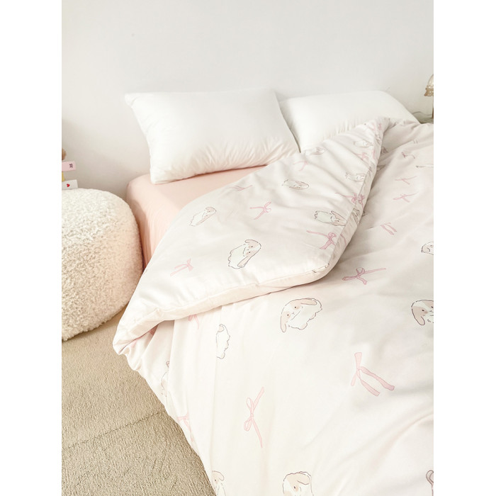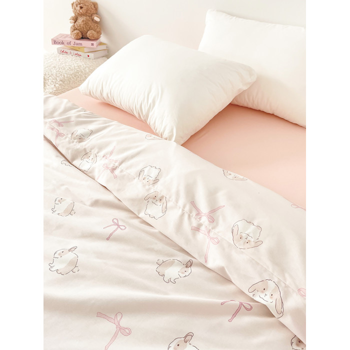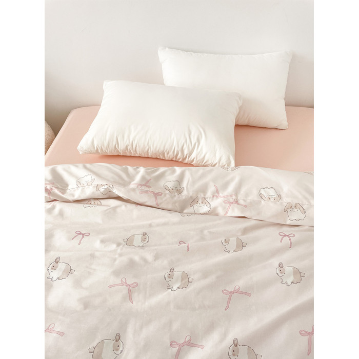 小兔糯糯 少女系原創小兔子全棉被套被芯罩100純棉單件粉色蝴蝶結