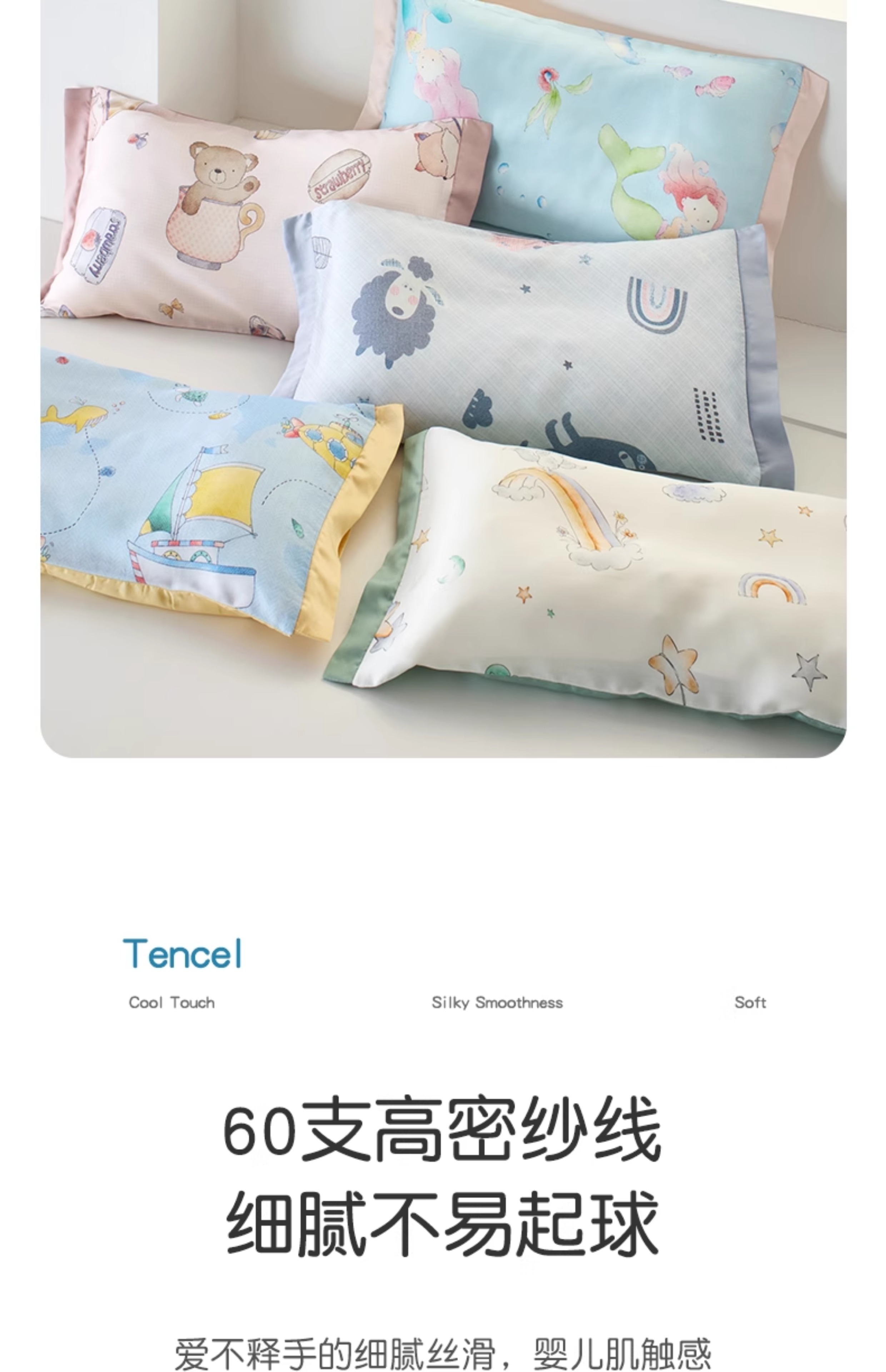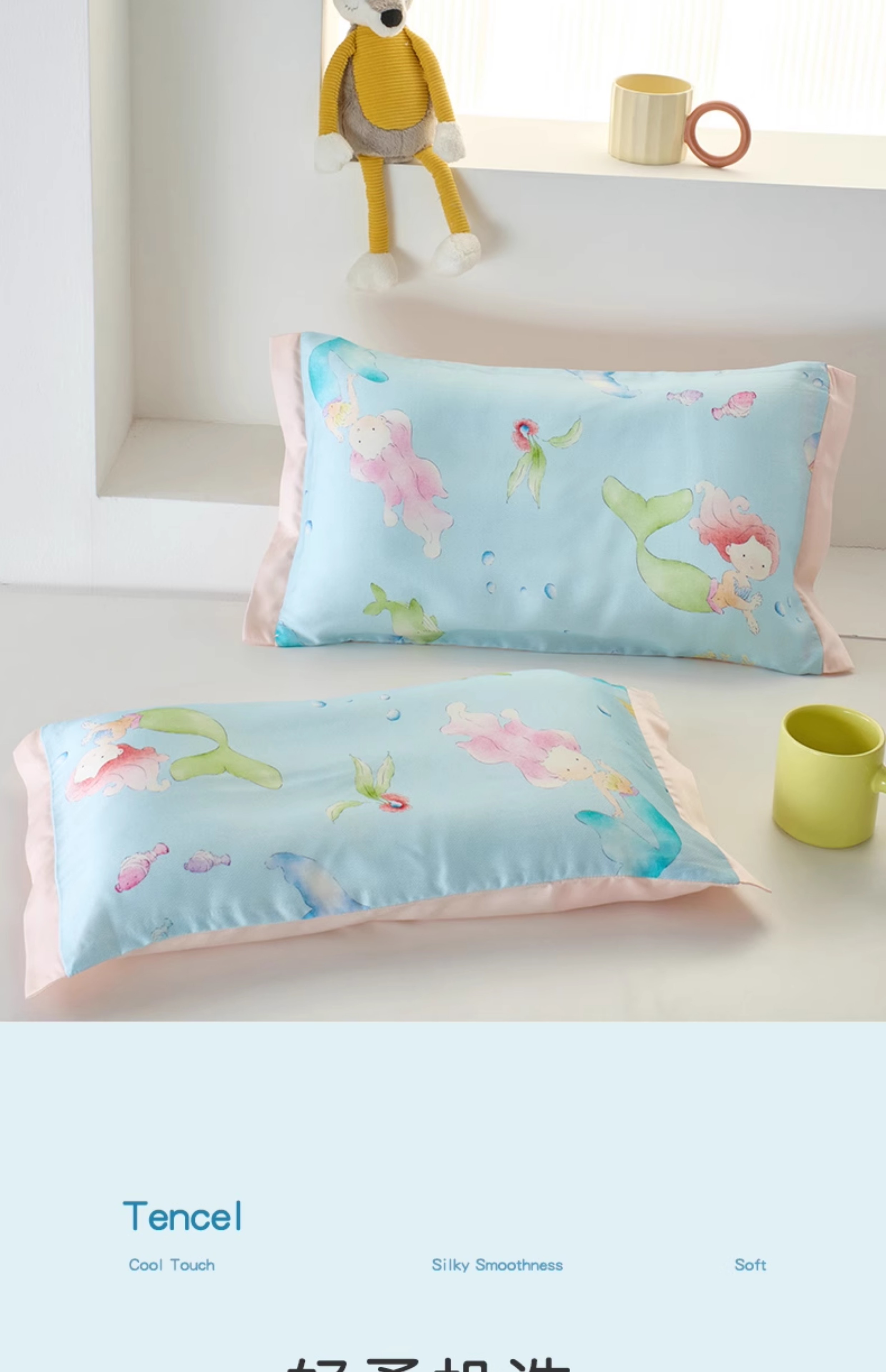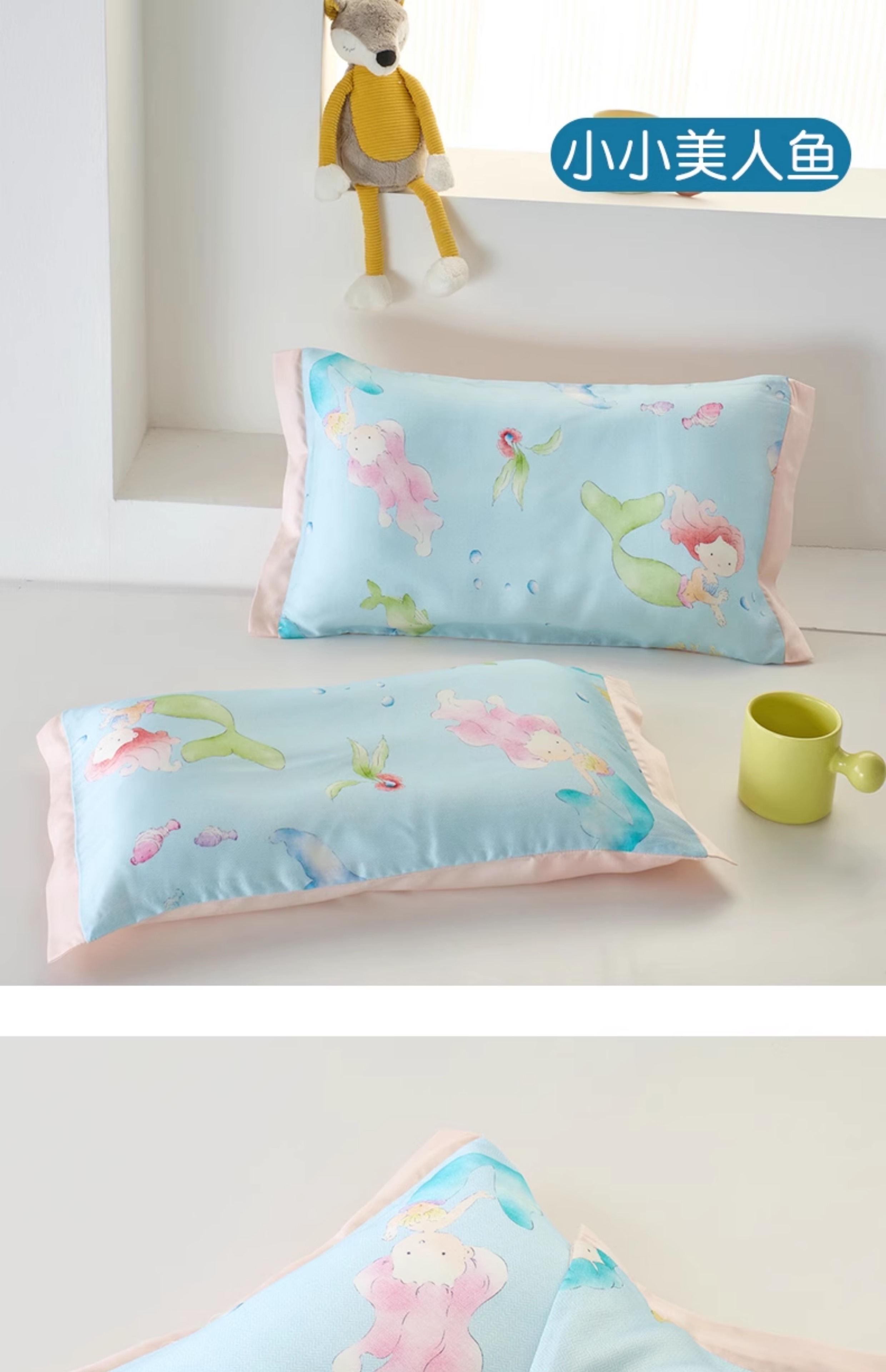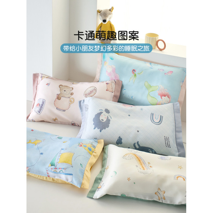 米蘇卡通60s蘭精天絲枕套兒童枕頭套冰絲枕巾學生枕芯套夏季40x60