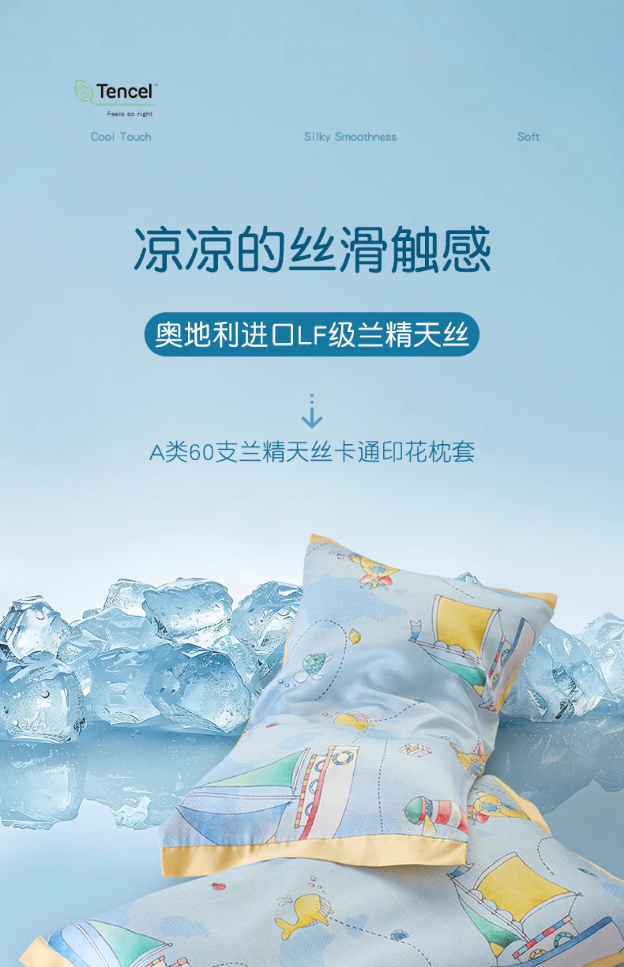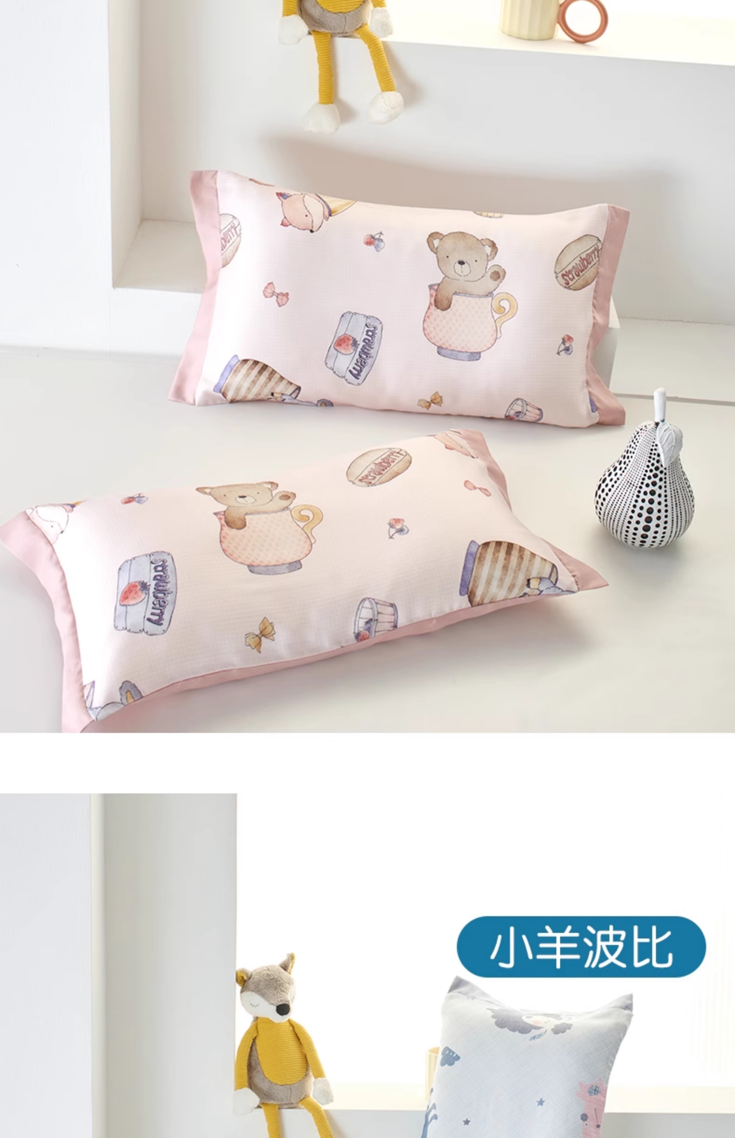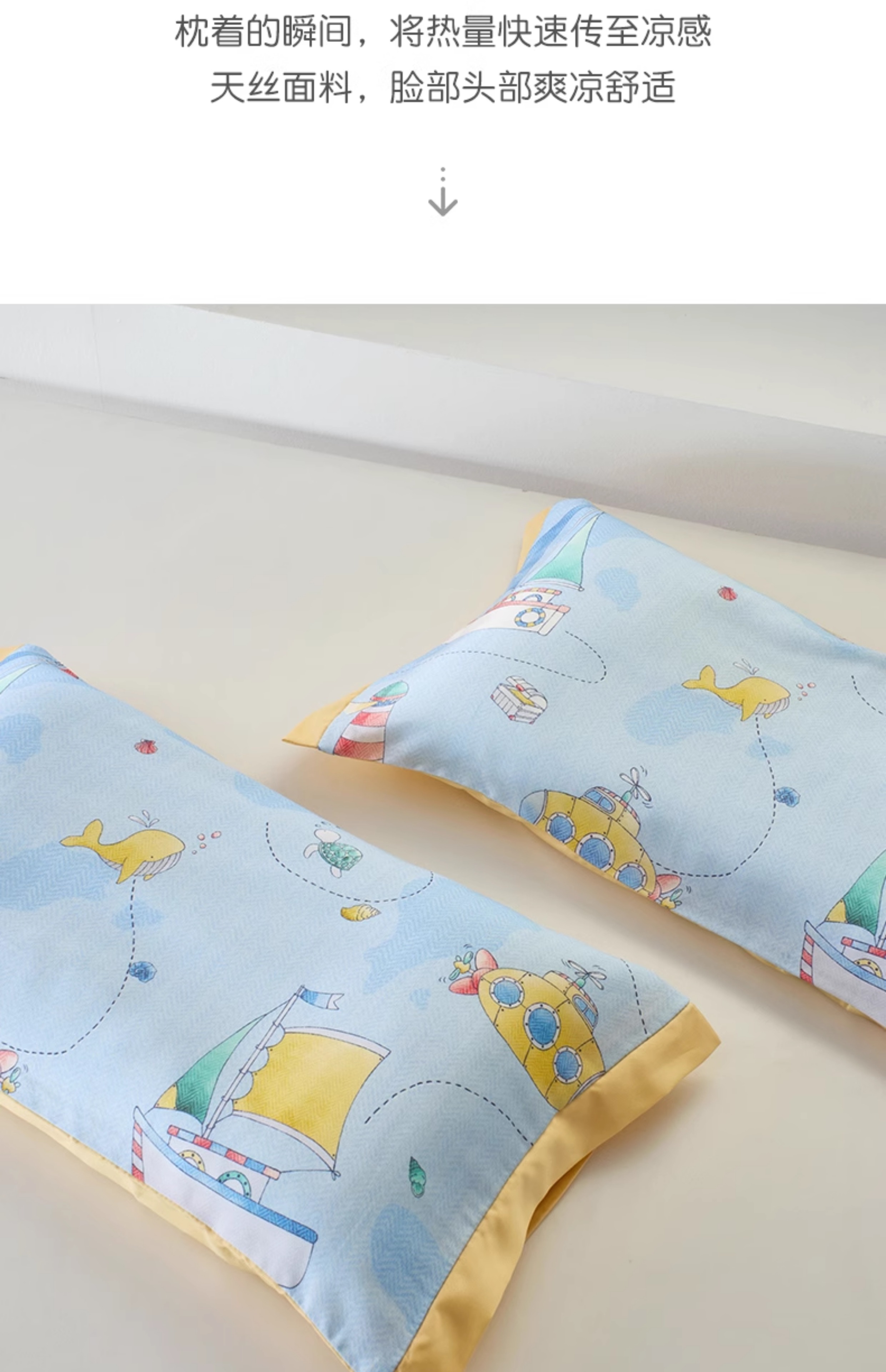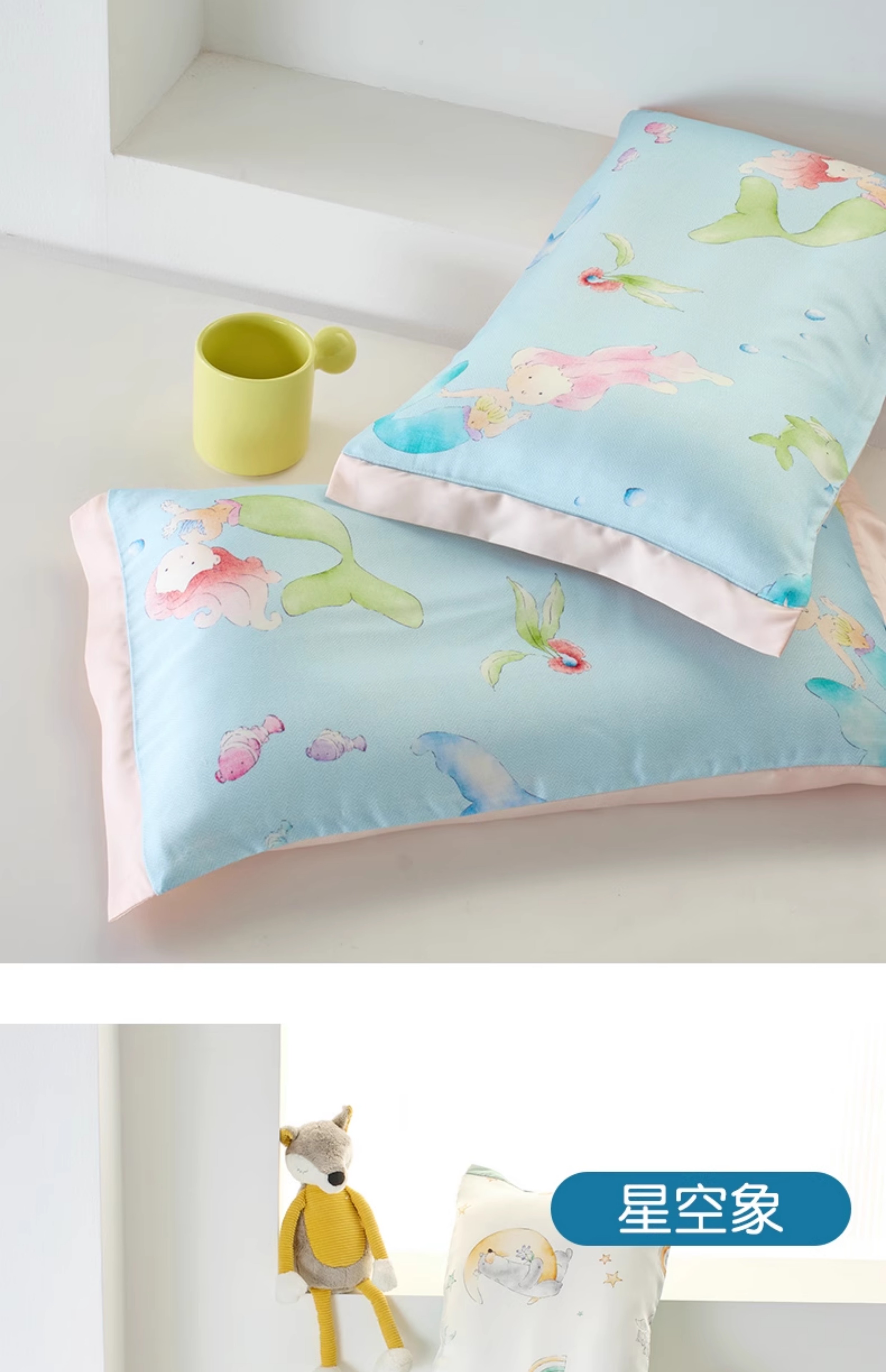 米蘇卡通60s蘭精天絲枕套兒童枕頭套冰絲枕巾學生枕芯套夏季40x60