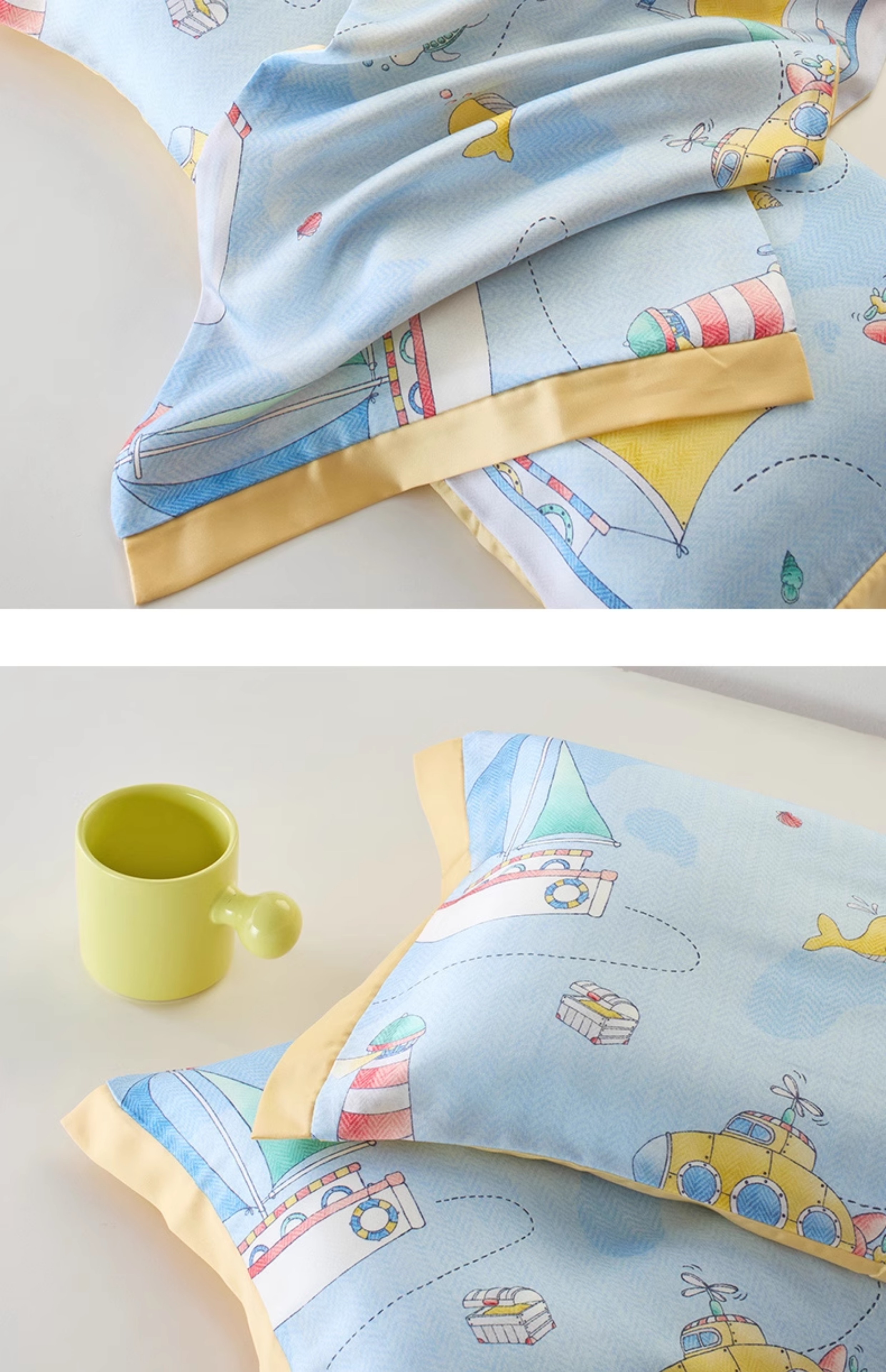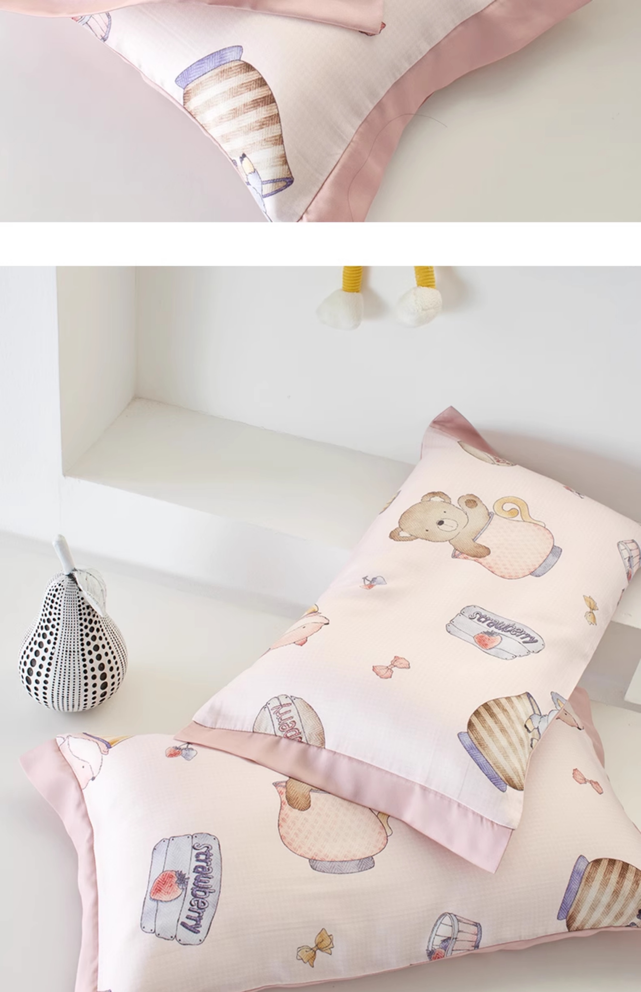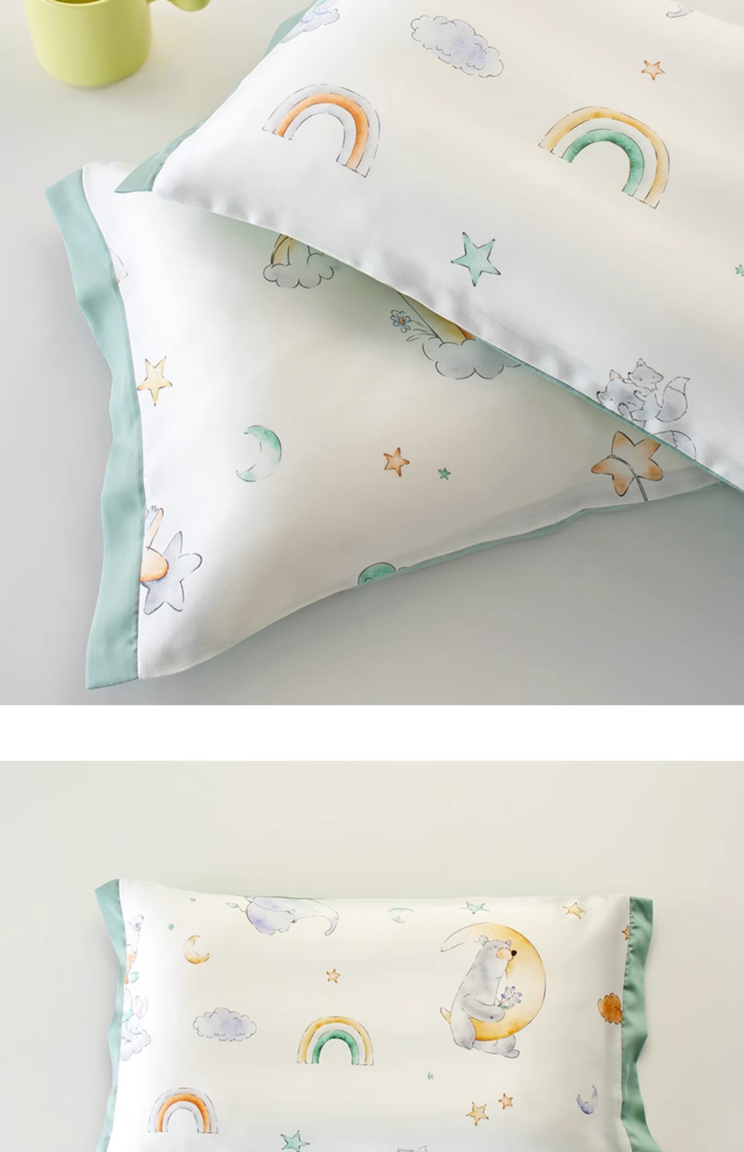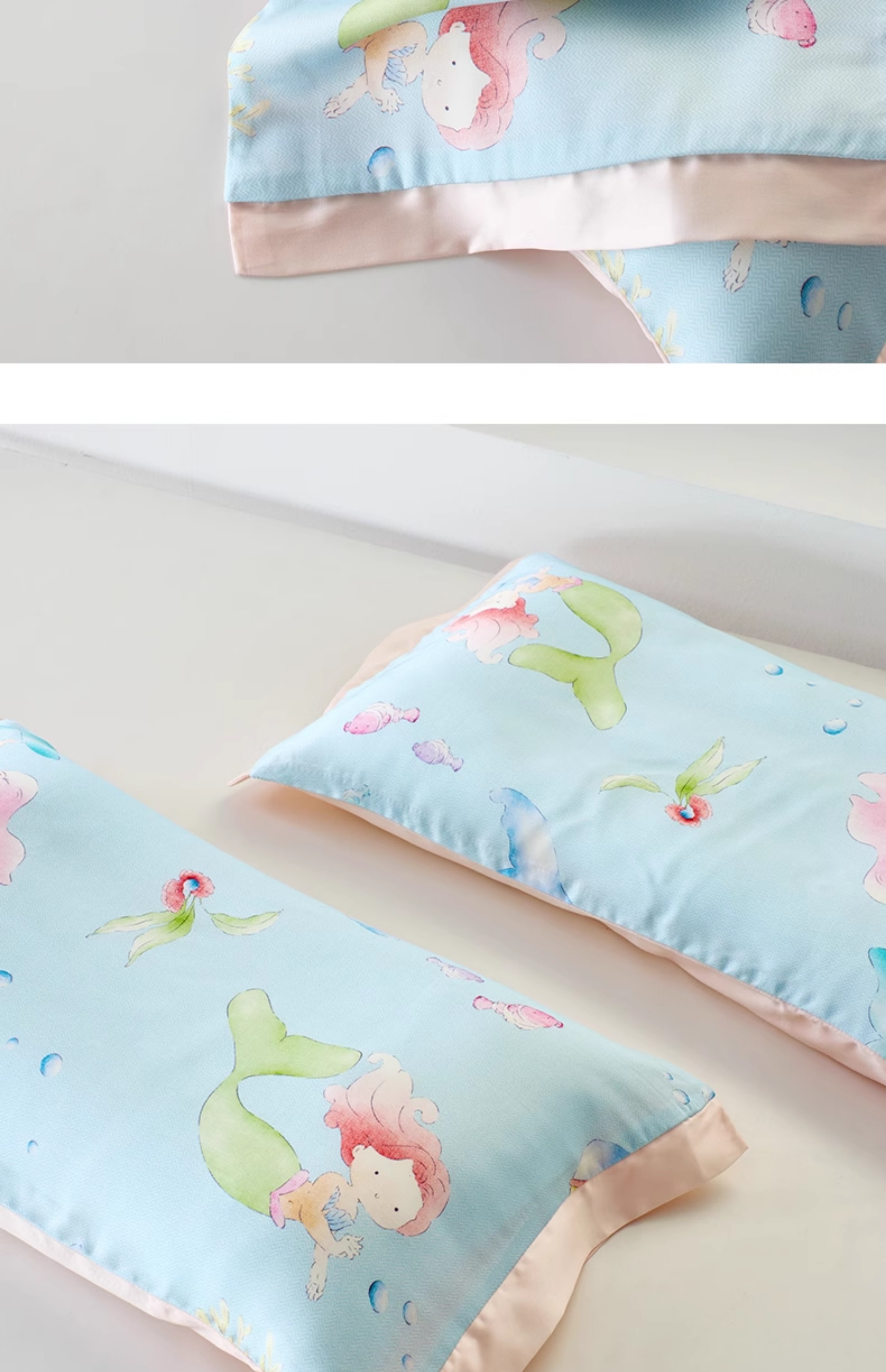 米蘇卡通60s蘭精天絲枕套兒童枕頭套冰絲枕巾學生枕芯套夏季40x60