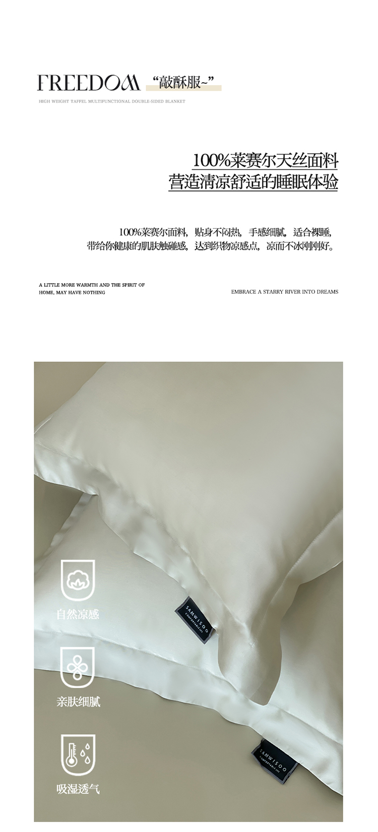 單品枕套一對裝60支萊賽爾天絲簡約百搭吸溼透氣純色48x74枕頭套