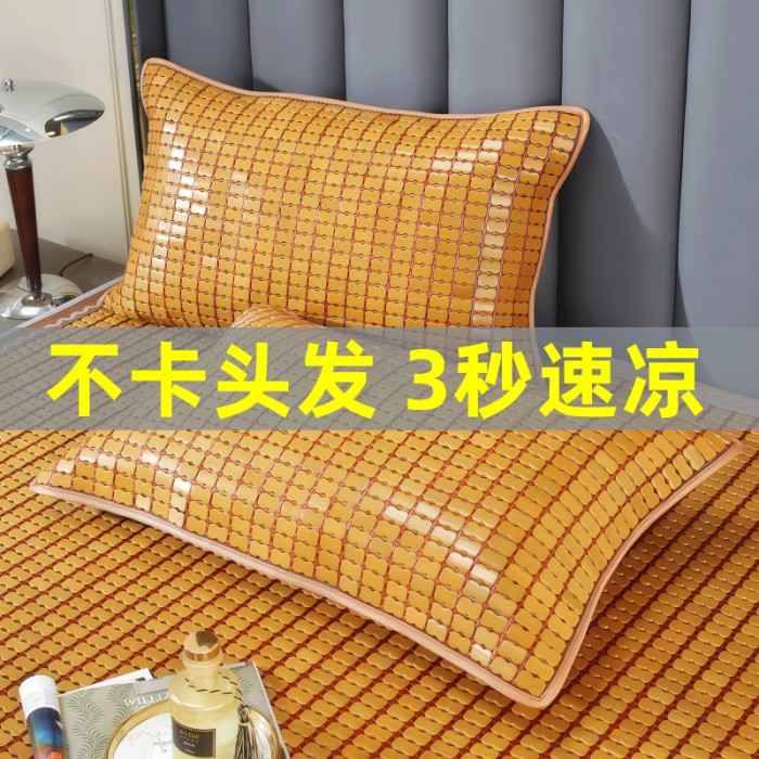 夏季麻將涼蓆枕套枕頭套單人涼枕成人竹蓆枕夏天碳化竹子護頸枕墊