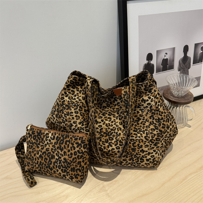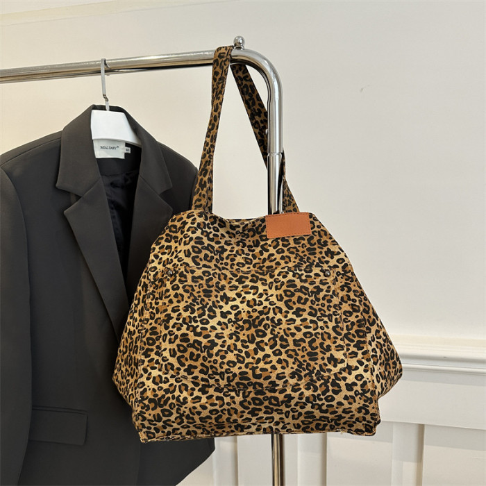 時尚復古豹紋單肩包2024冬季新款個性小衆設計簡約通勤文藝托特包
