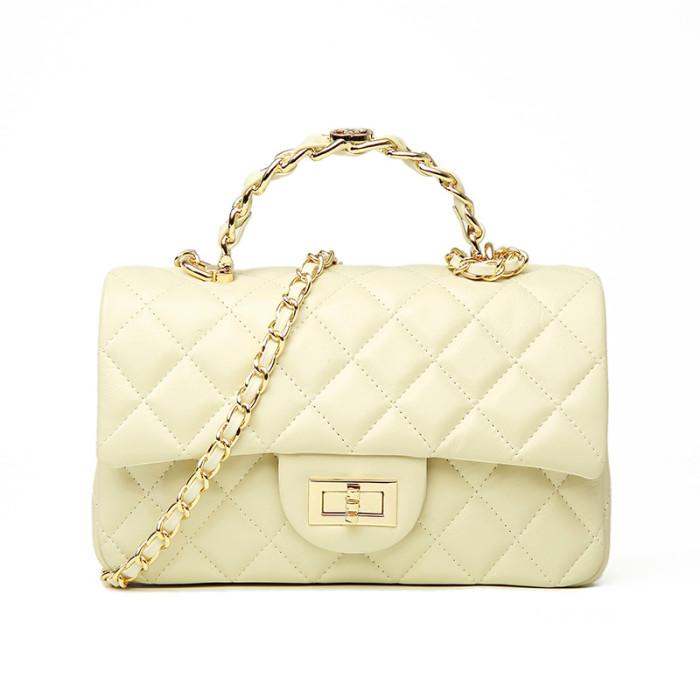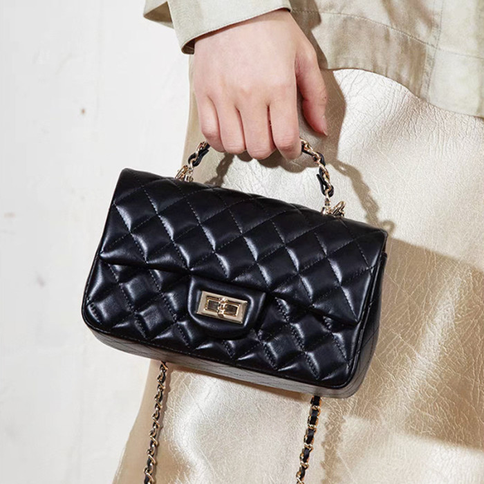 小香風真皮菱格鏈條包女手提包高級感2025新款百搭單肩斜背小方包