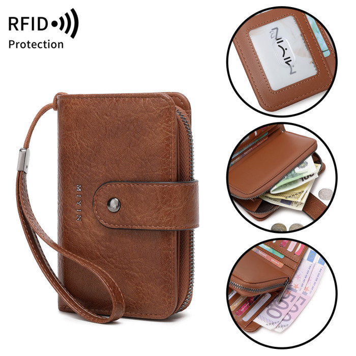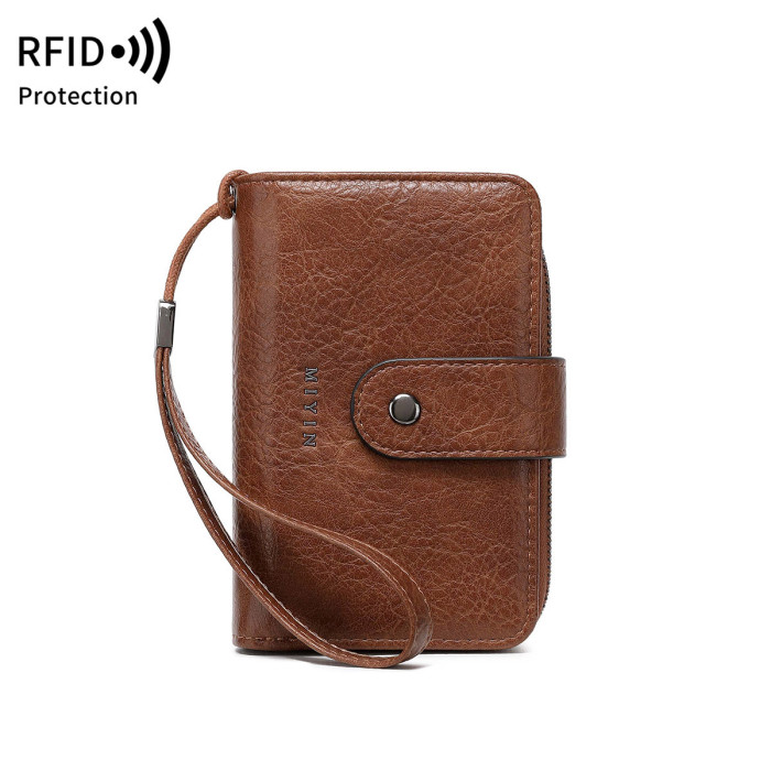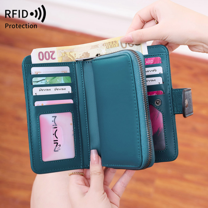 RFID防盜刷女士短錢包新款歐美復古三折拉鍊零錢包多功能可攜式錢包