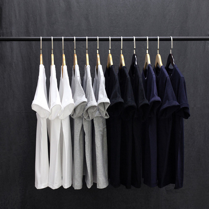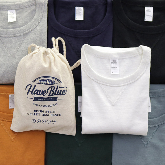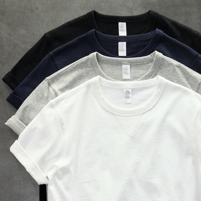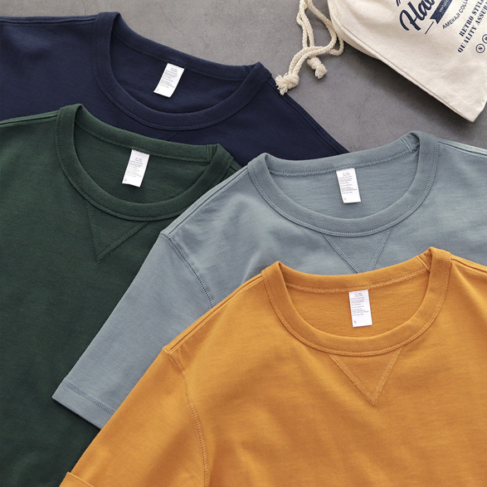 260g美式復古阿美哢嘰純棉體恤修身純白打底衫重磅圓領短袖男T恤