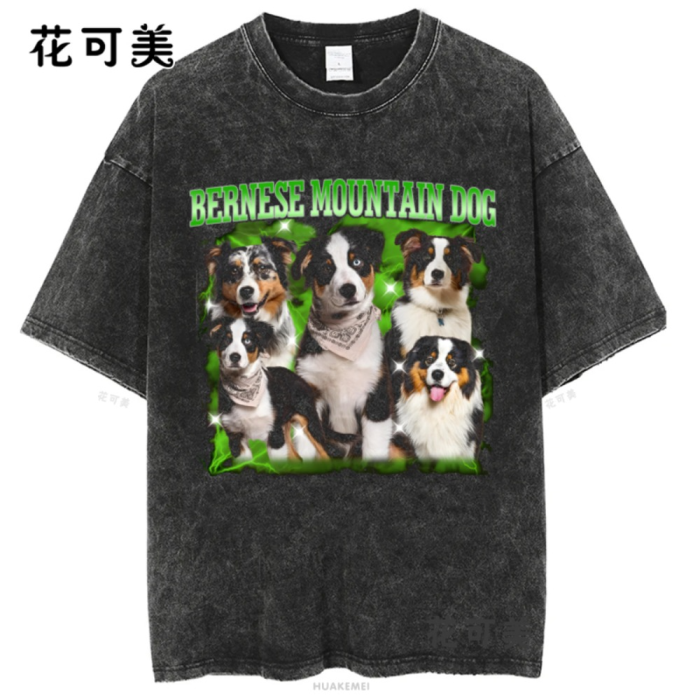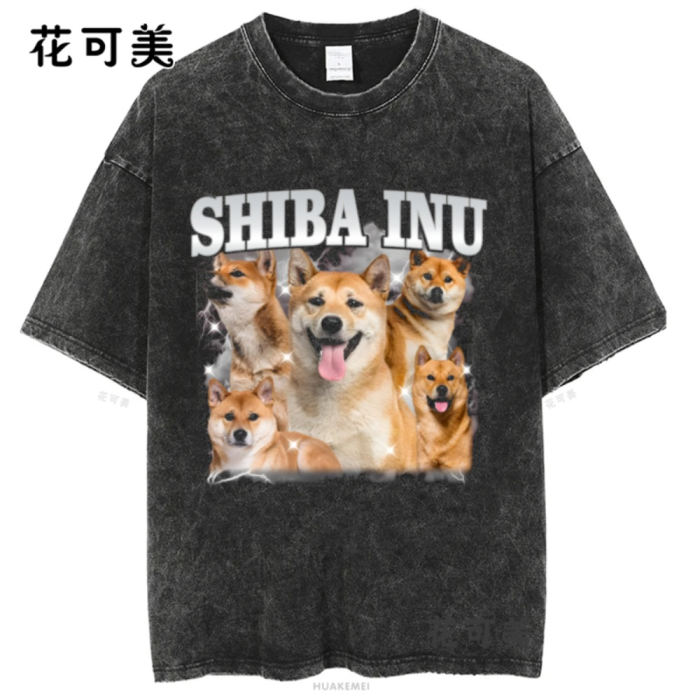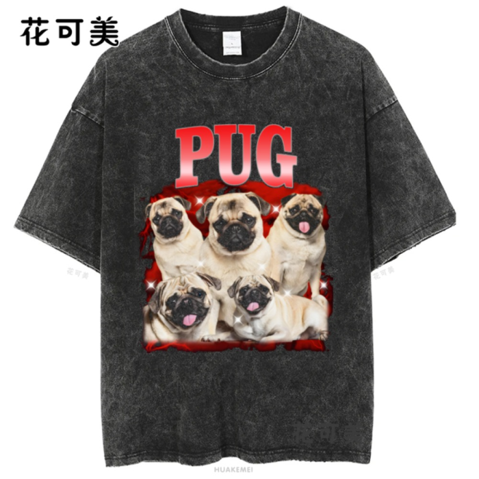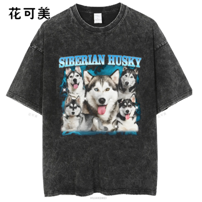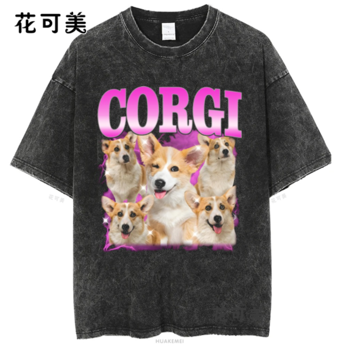 做舊水洗柯基巴哥犬二哈中華田園犬金毛美式復古純棉男t恤