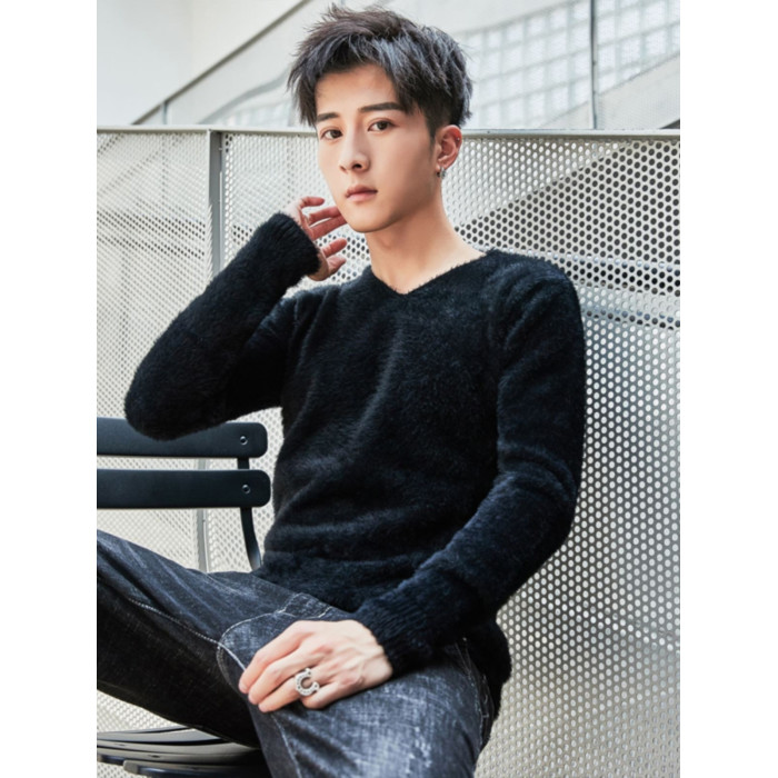 冬衣男T恤保暖內搭針織衫男士衣服修身打底衫毛絨t恤冬天毛毛衣男
